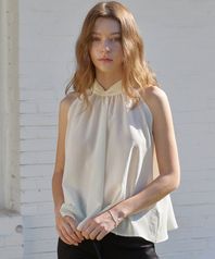 벨 리본 홀터넥 플레어 블라우스 ( 아이보리 )