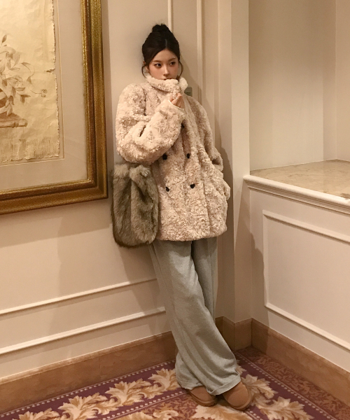 시프네 더블 버튼 퍼 자켓 ( 아이보리 )
