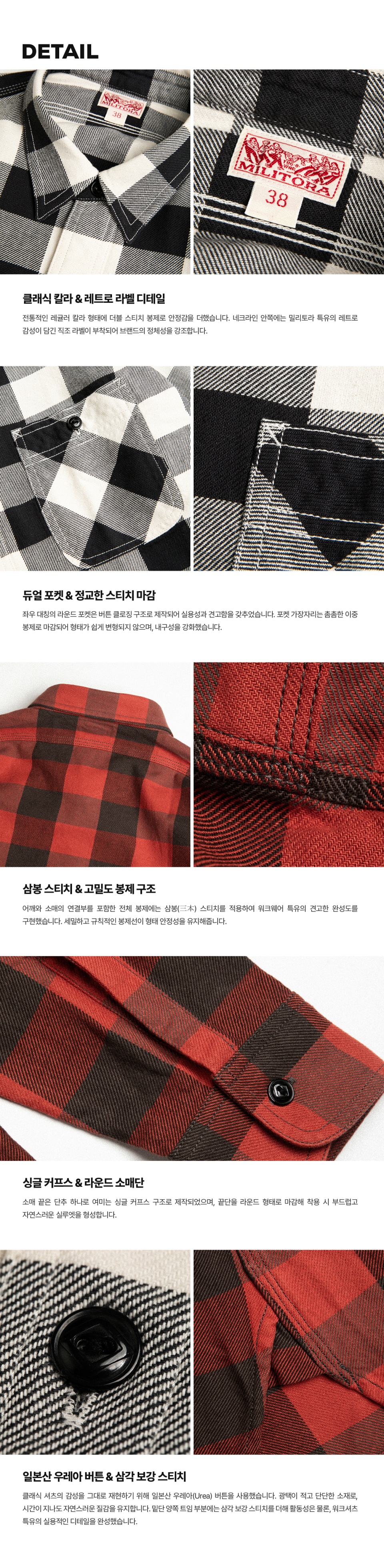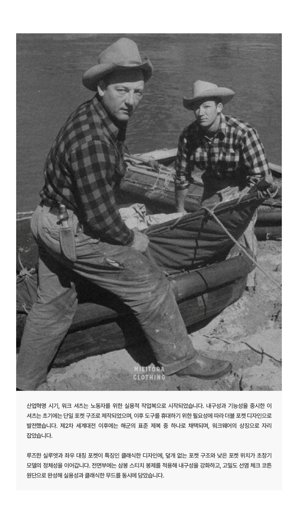 밀리토라(MILITORA)는 절제된 디테일로 강인한 매력을 표현하는 브랜드입니다. 1930년대 데님과 워크 트라우저 등 워크 웨어 기반의 의류를 현대적으로 복각합니다.
