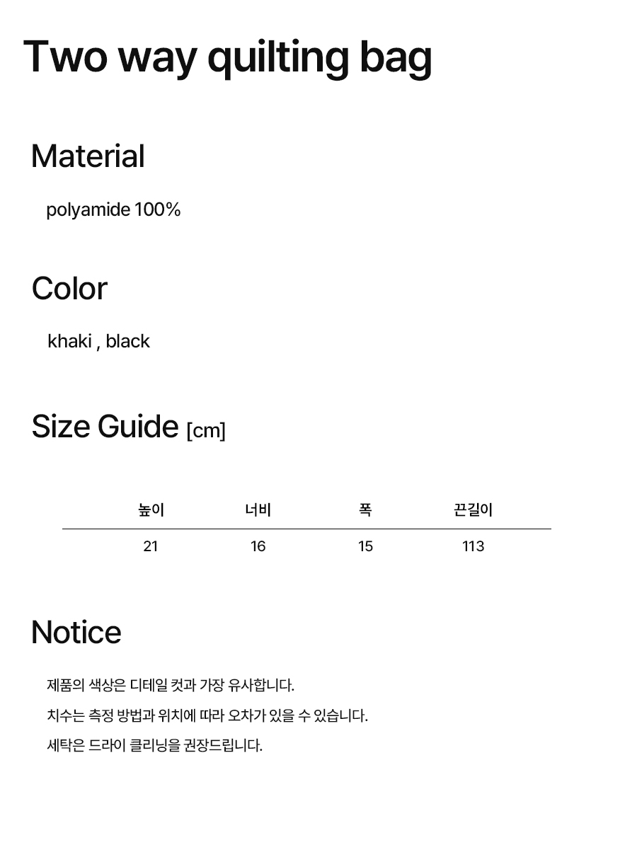 NOI1782 투웨이 퀼팅백 (카키)