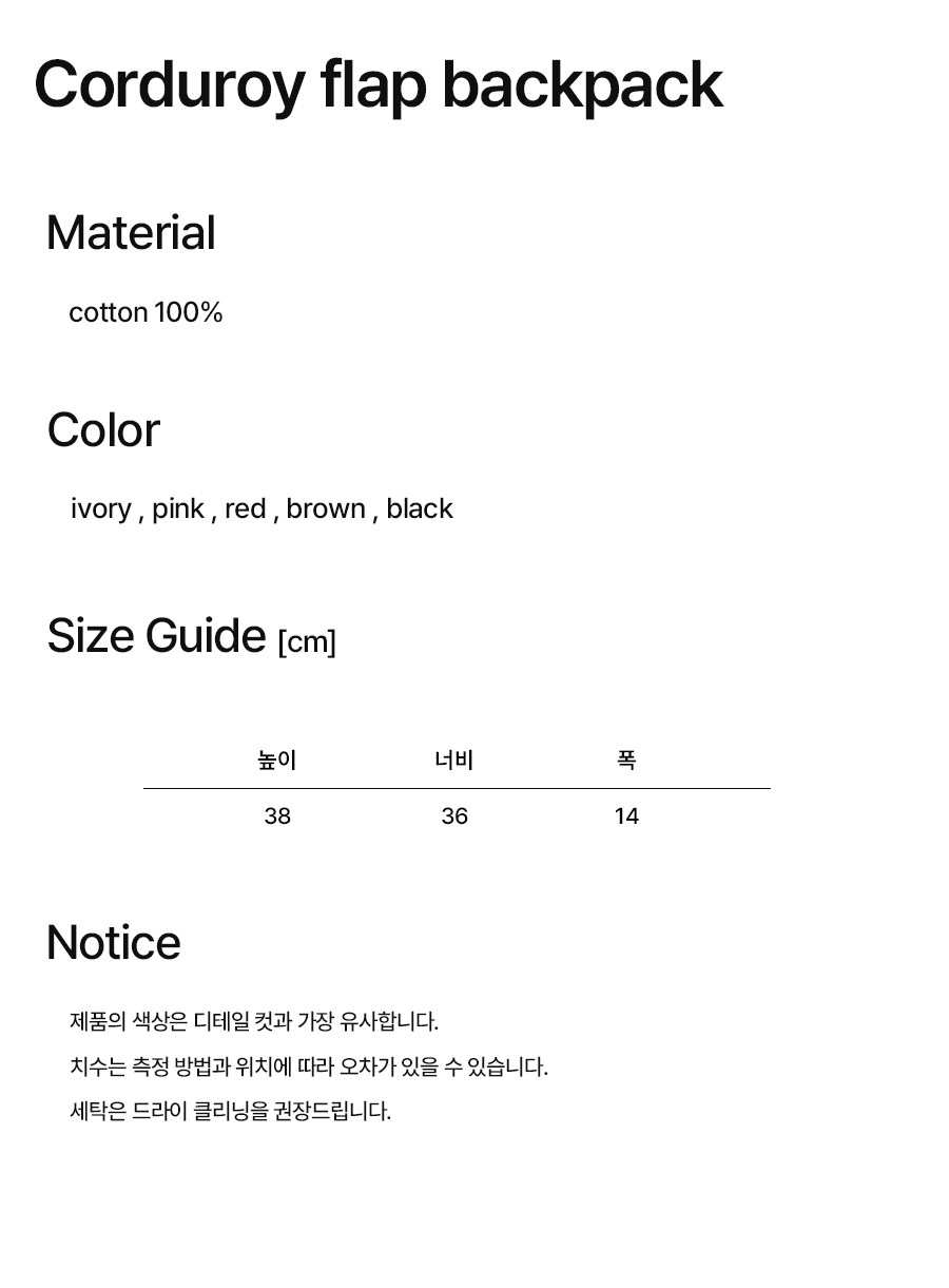 NOI1790 코듀로이 플랩 백팩 (핑크)