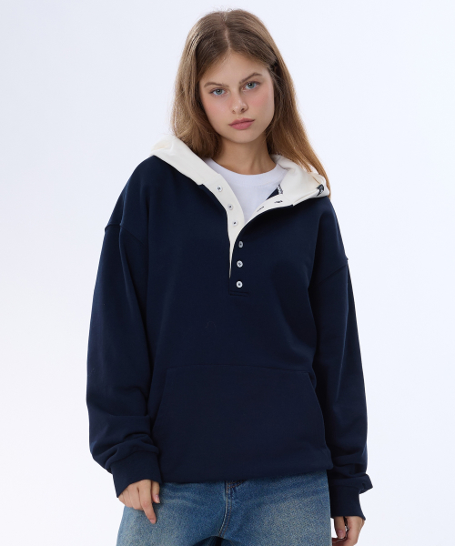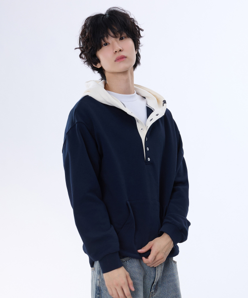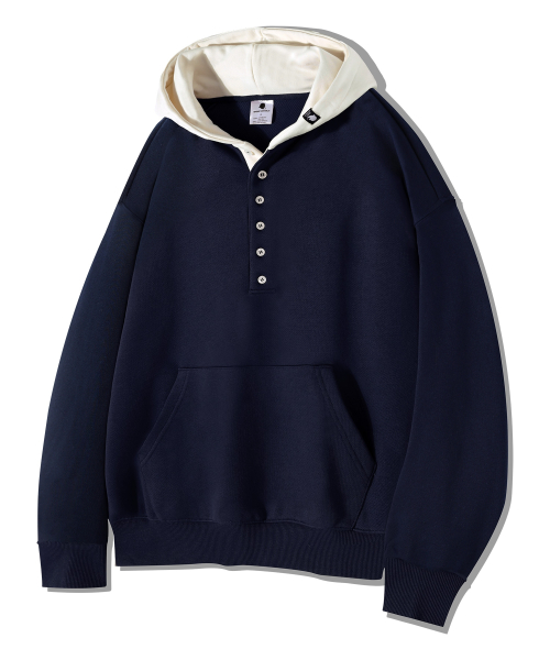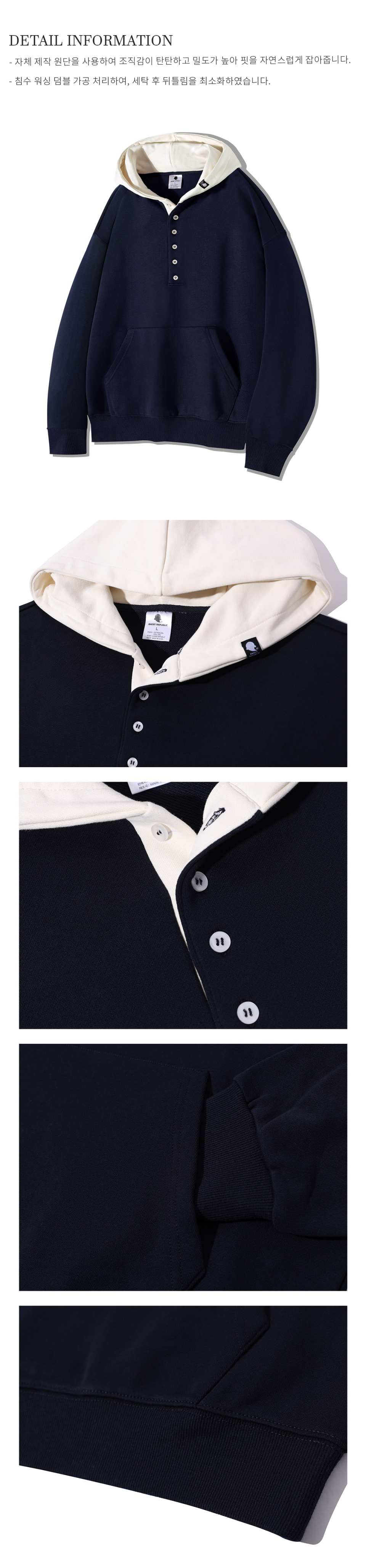 베이직 후드배색 헨리넥 후드티 GHT-485_네이비