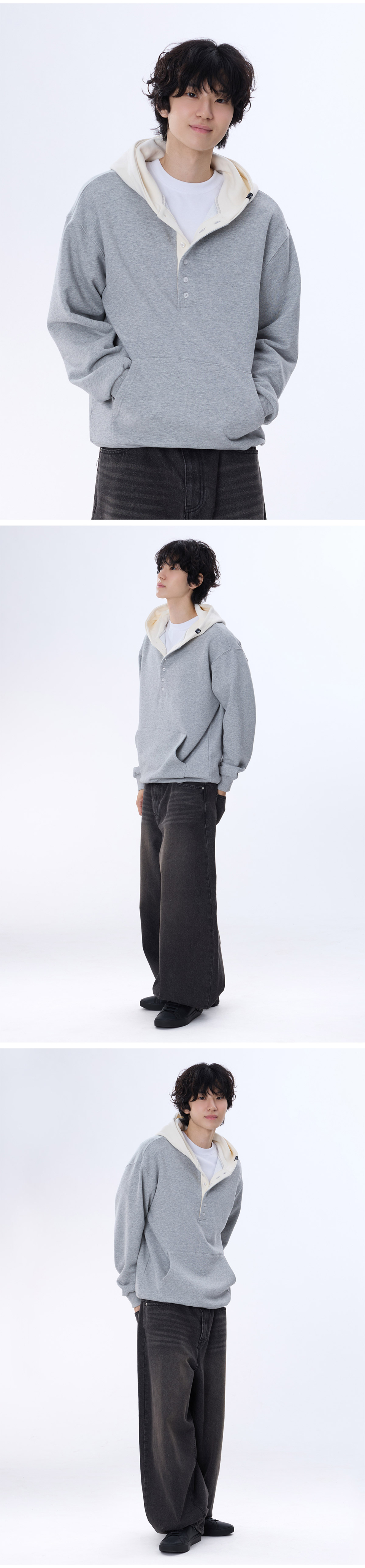 베이직 후드배색 헨리넥 후드티 GHT-485_그레이