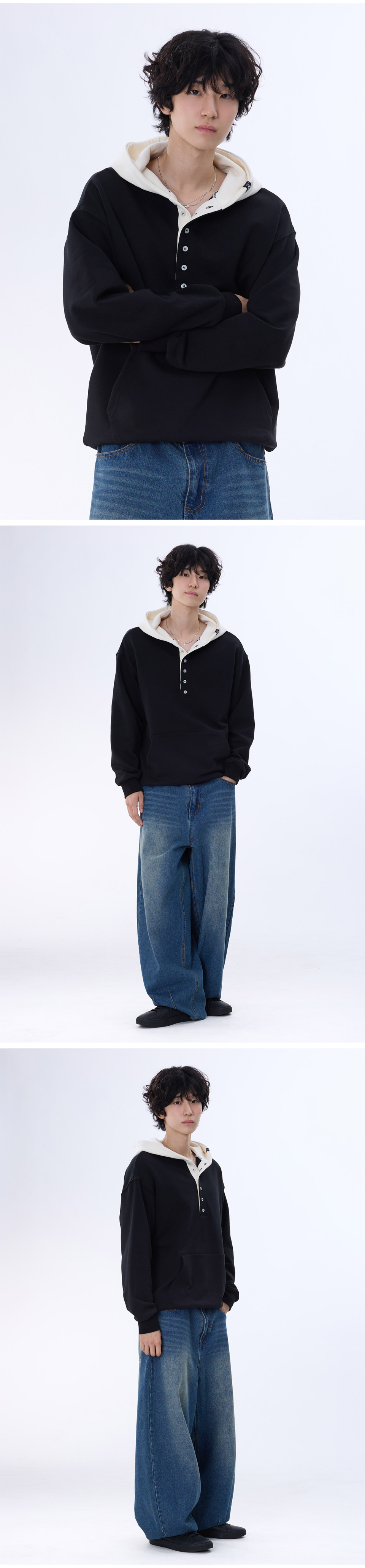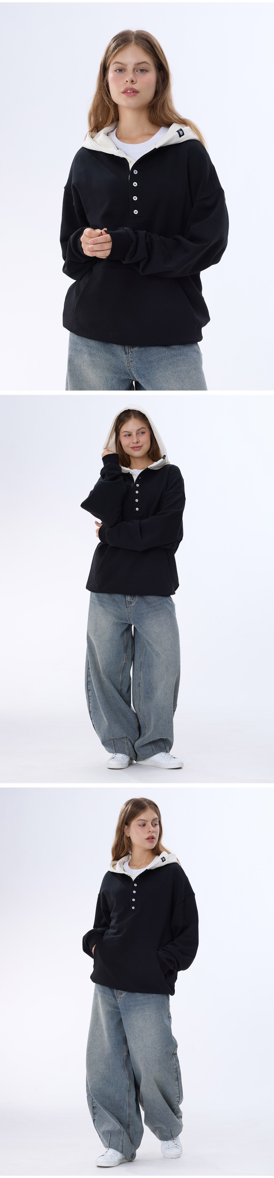 베이직 후드배색 헨리넥 후드티 GHT-485_블랙