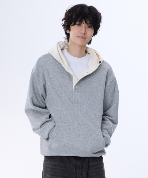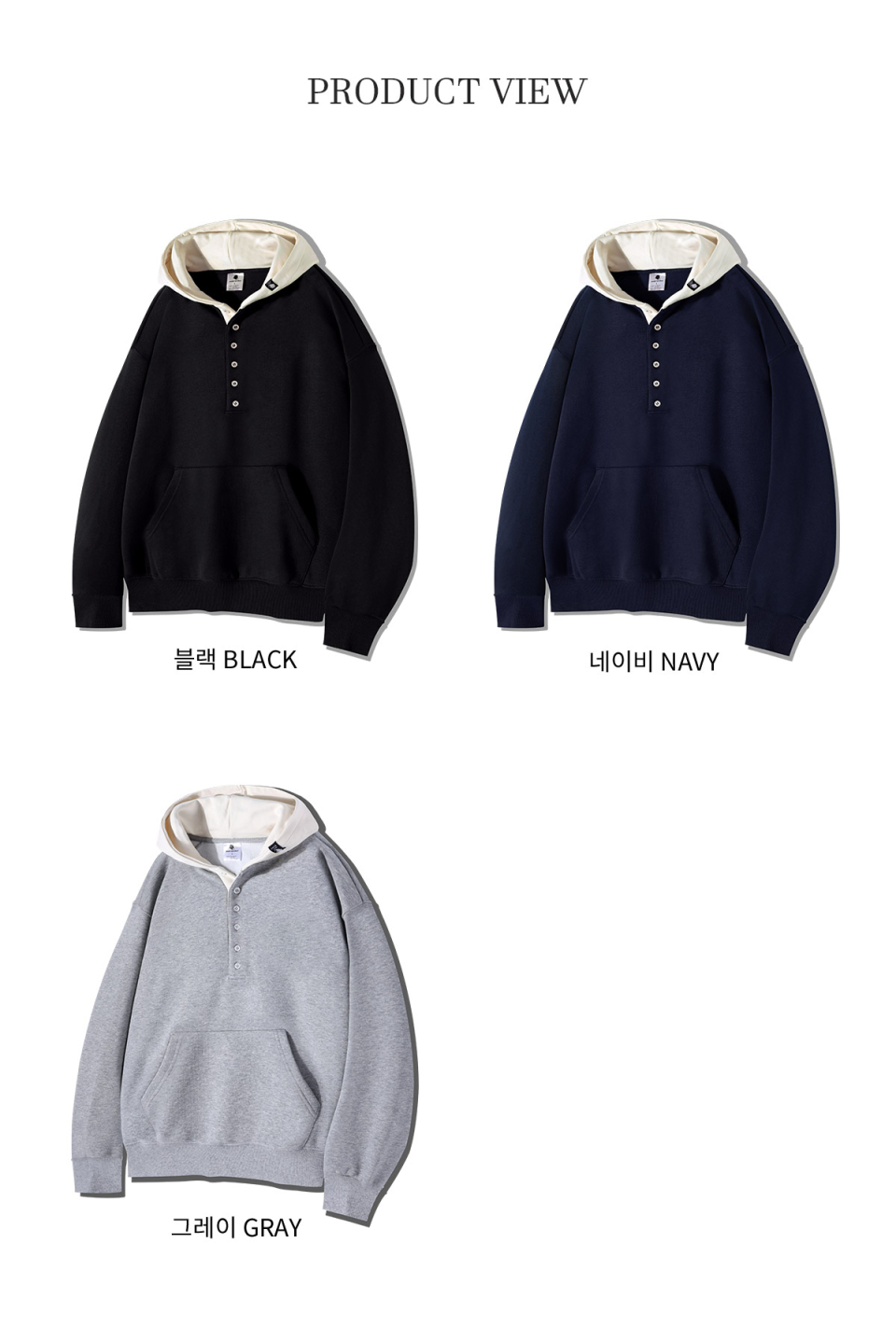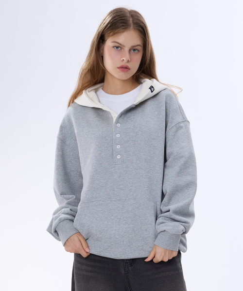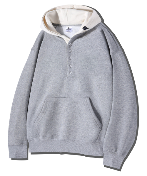 베이직 후드배색 헨리넥 후드티 GHT-485_그레이