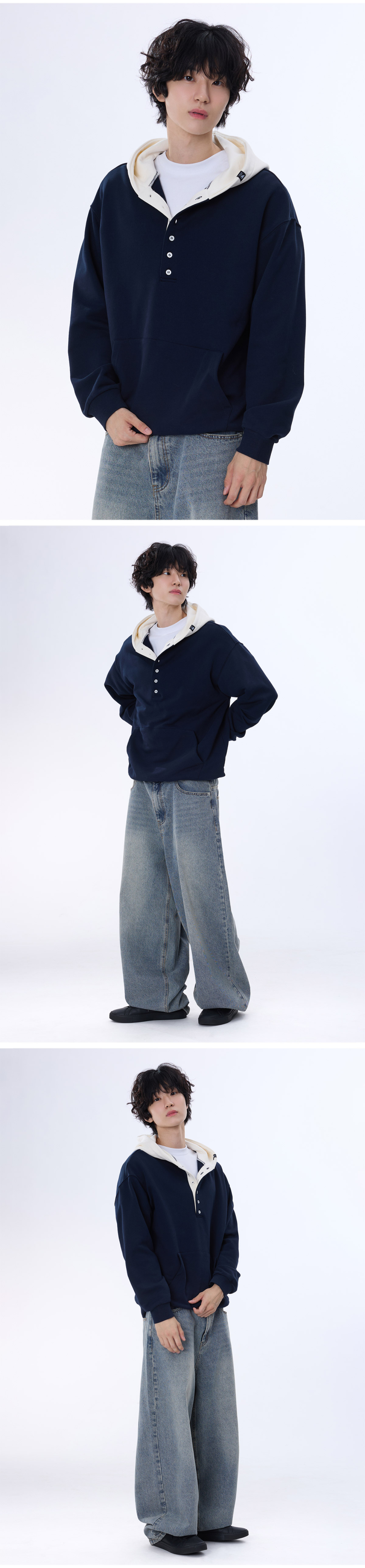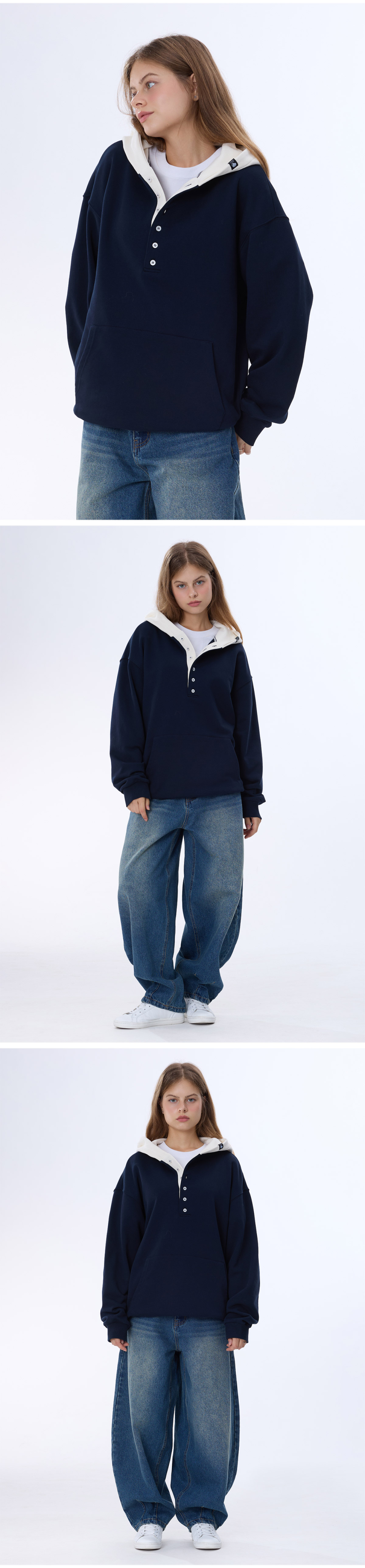 베이직 후드배색 헨리넥 후드티 GHT-485_네이비