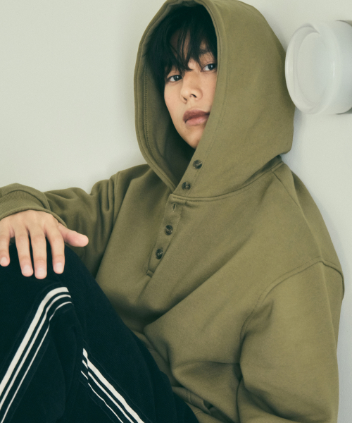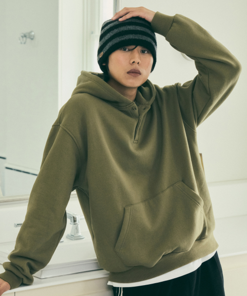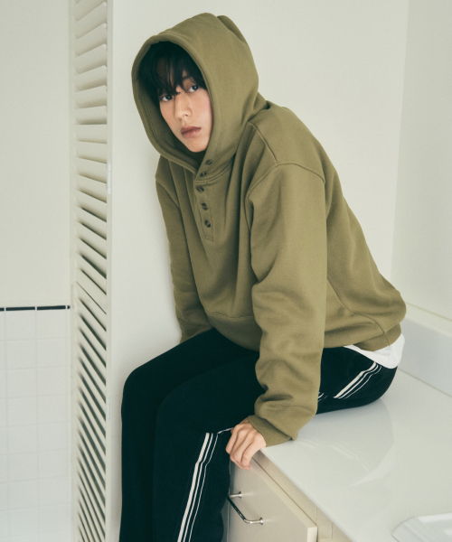 스너그 버튼 헨리넥 후드티_KHAKI(W25-TP47)