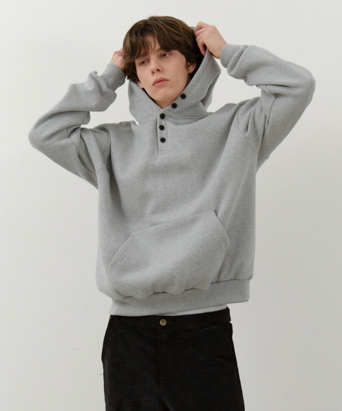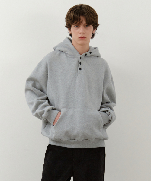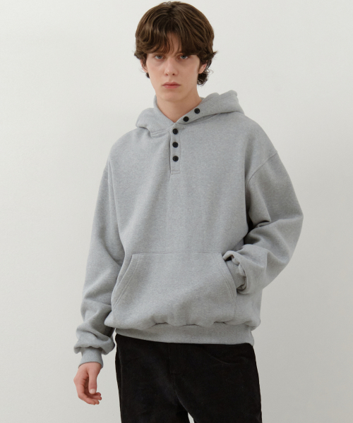 스너그 버튼 헨리넥 후드티_MELANGE GRAY(W25-TP47)