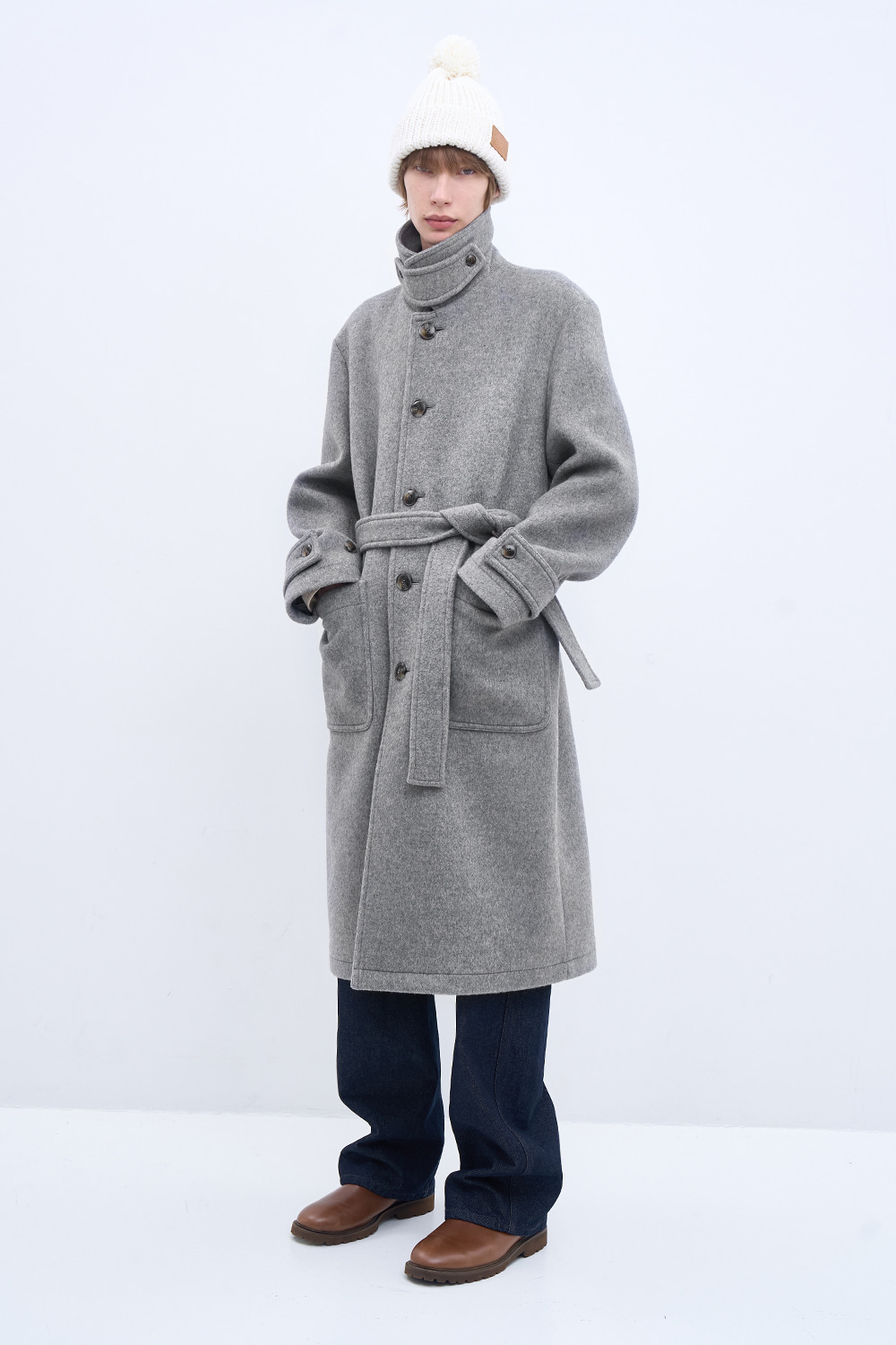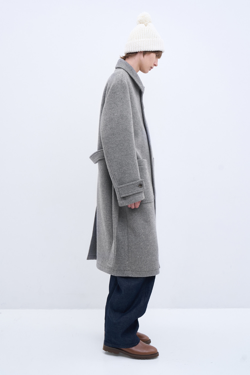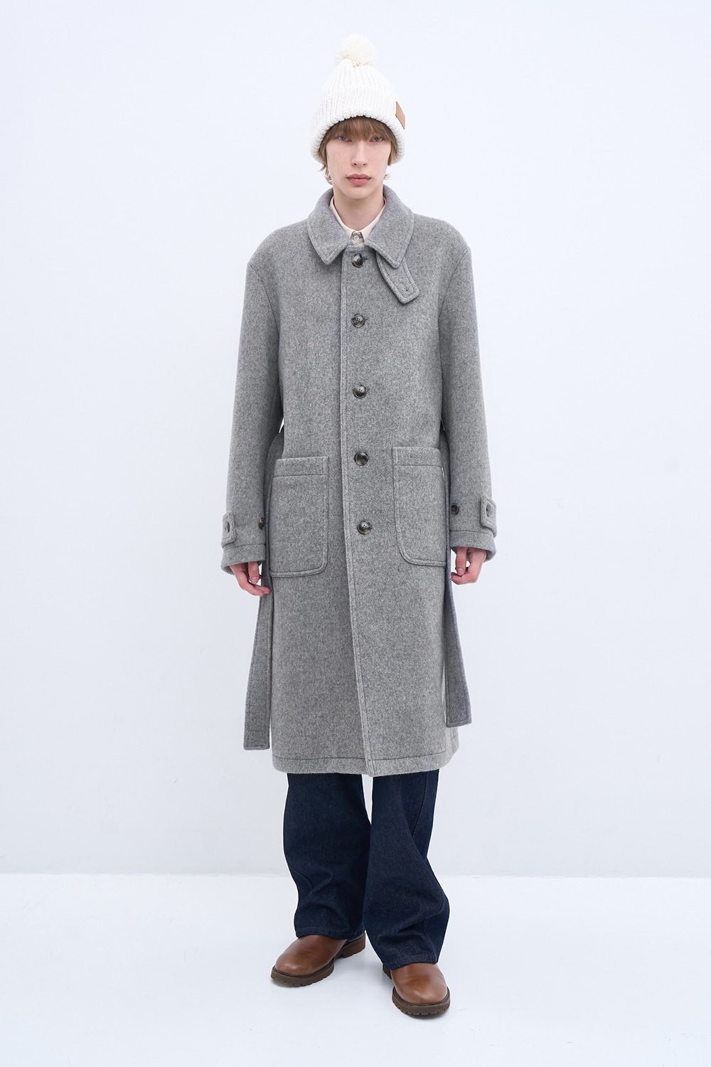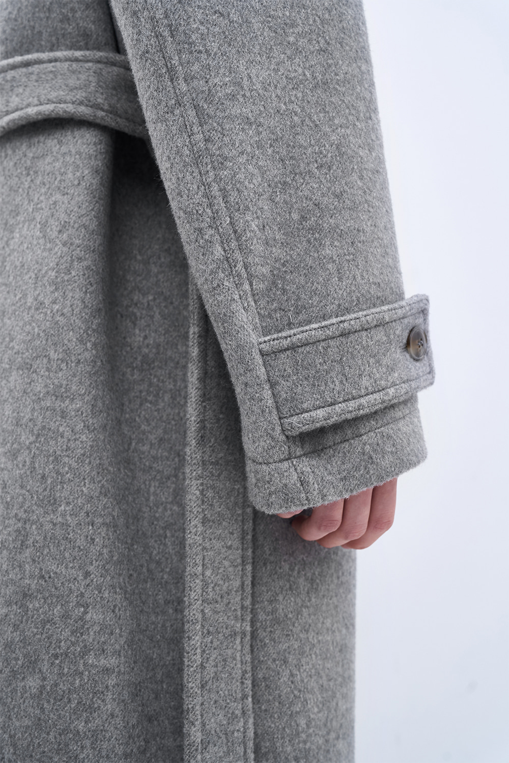 새롭게 선보이는 울 소재의 싱글 코트. 멜란지 버진 울 원사로 완성한 오묘한 컬러감과 풍부한 텍스처. 26oz의 두께감과 탄탄한 고시감이 만들어내는 구조적인 실루엣. 넓은 간격의 더블 스티치와 소뿔 단추로 구성된 절제된 디테일. 벨트 디테일을 더해 바람과 추위에 대응하는 스타일리시한 겨울 아우터.
