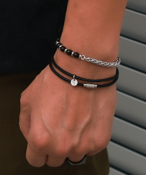 블랙 코르도바 BM258B1170 소가죽 레이어드 남자팔찌