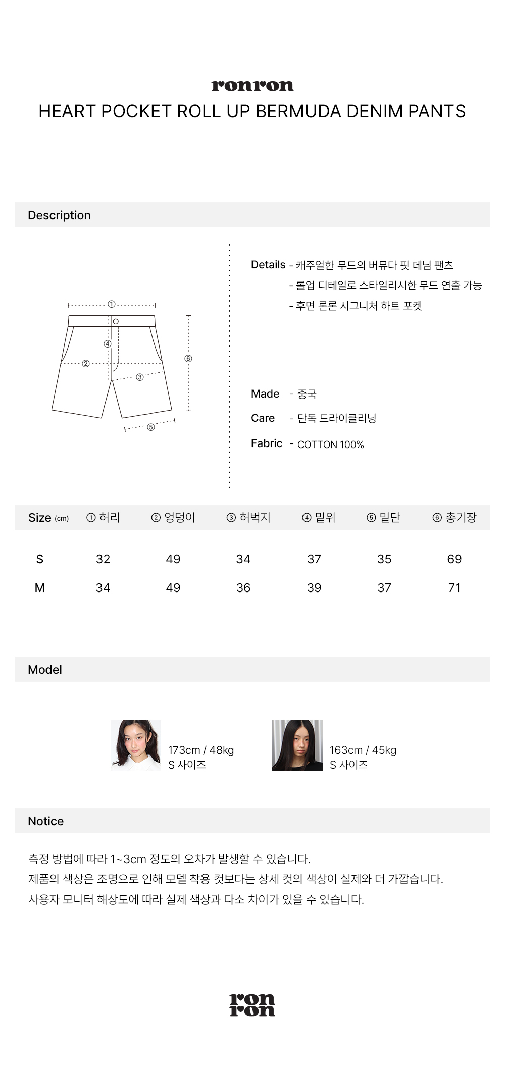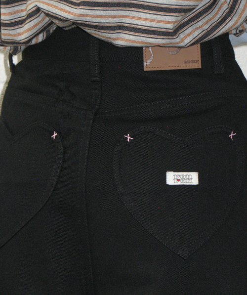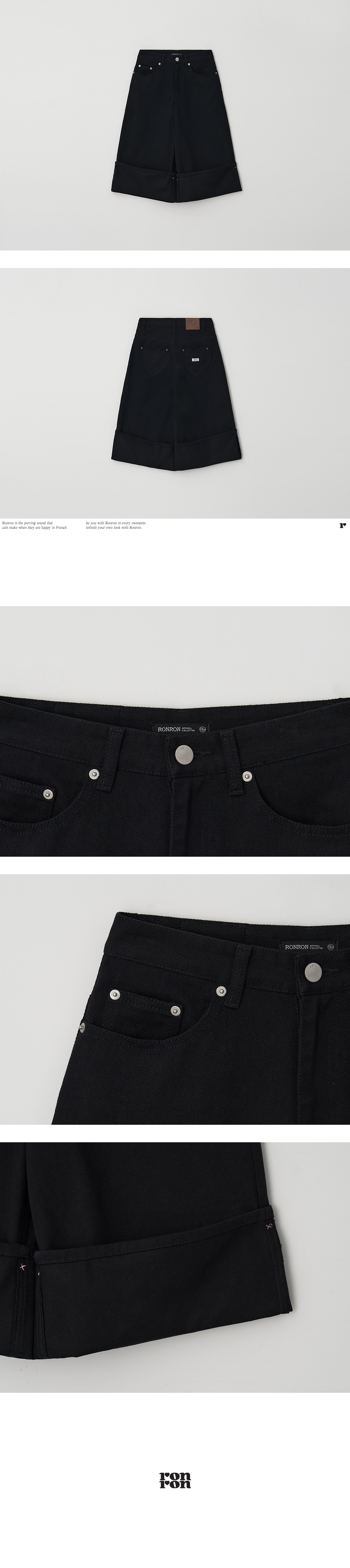 HEART POCKET ROLL UP BERMUDA DENIM PANTS BLACK