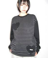 HEART DOT POCKET STRIPE LONG SLEEVE BLACK