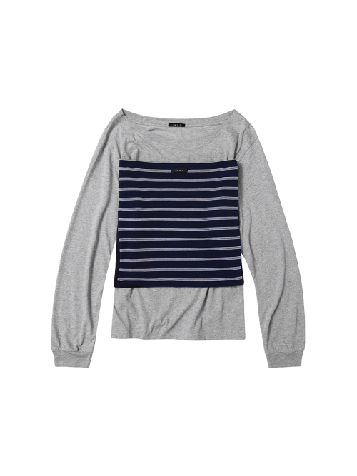 Pocket stripe supersize long sleeve t-shirt_navy