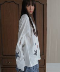 Star patchwork long sleeve tee_ivory