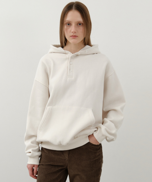 W/스너그 버튼 헨리넥 후드_IVORY(W25-TP48)