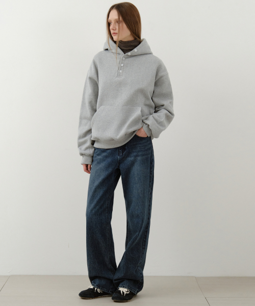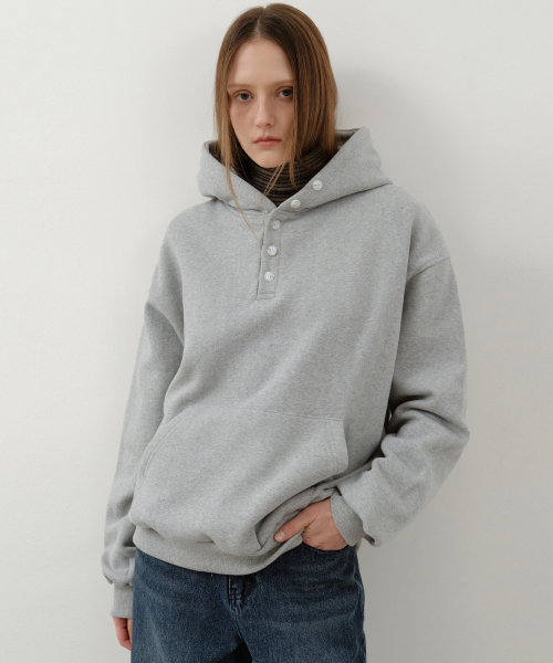 W/스너그 버튼 헨리넥 후드_MELANGE GRAY(W25-TP48)