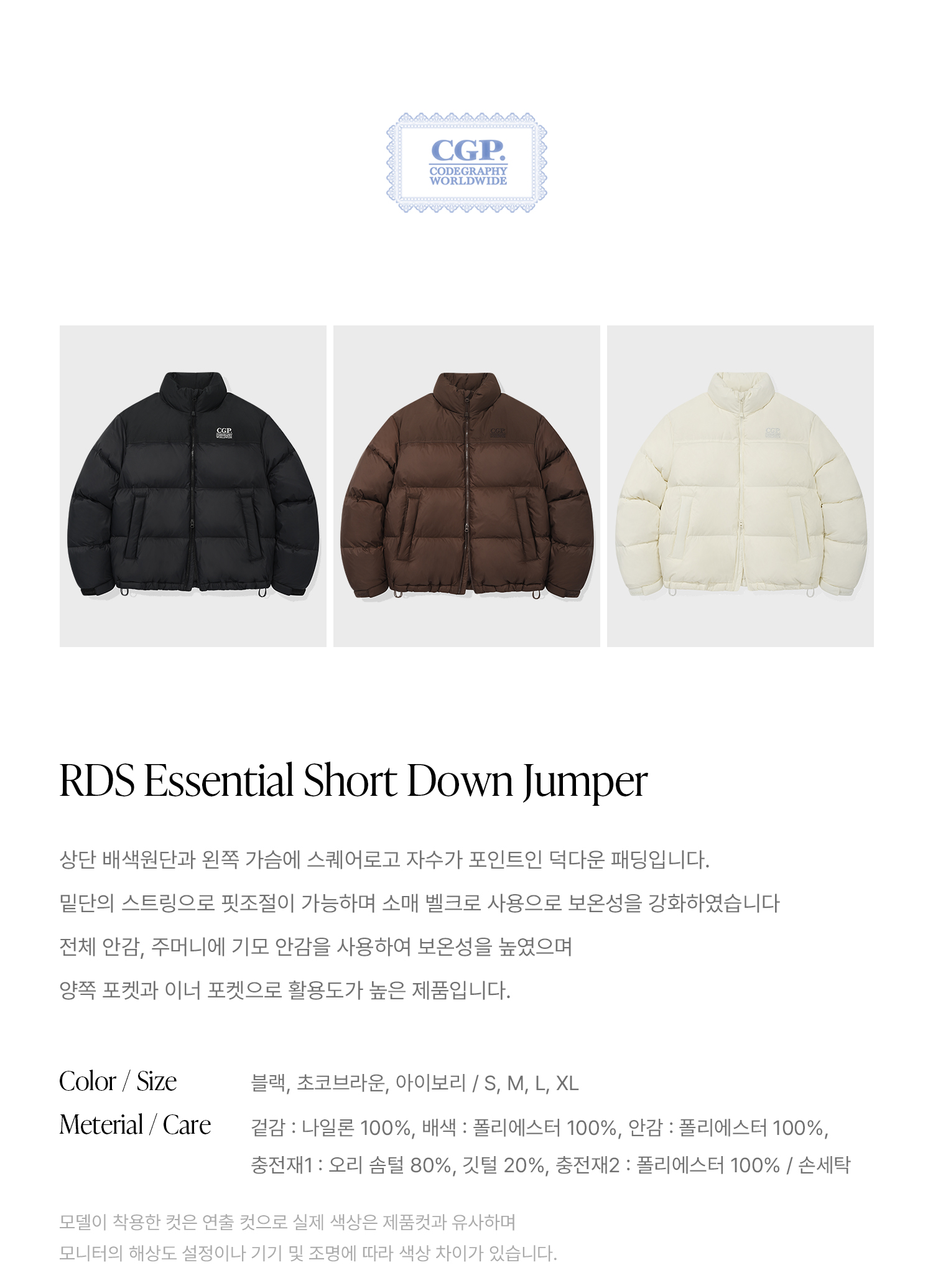 RDS 에센셜 숏다운 점퍼_아이보리