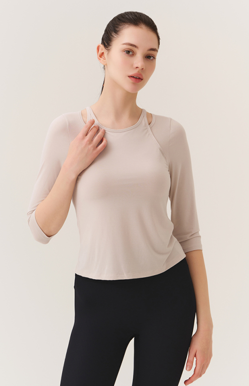 SOFT MODAL LAYERED BUILT-IN BRA 3/4-SLEEVE TEE
