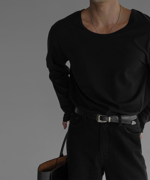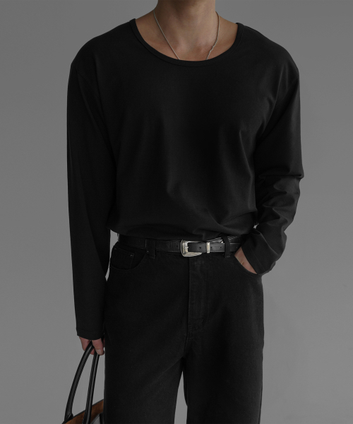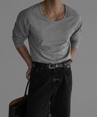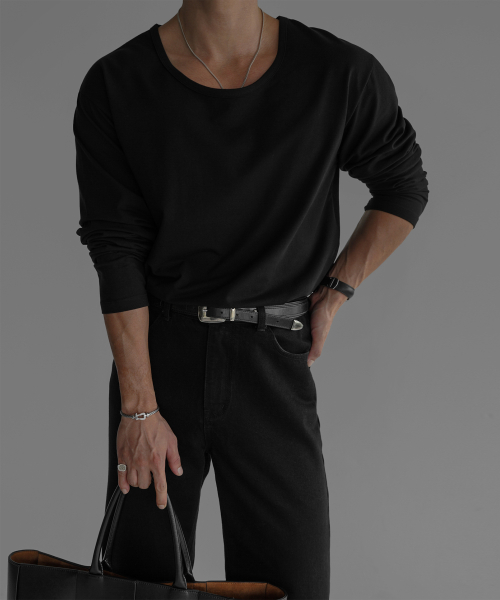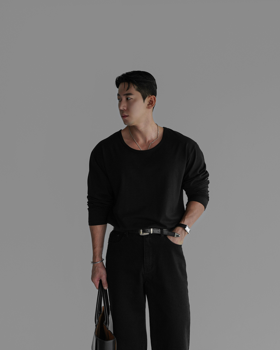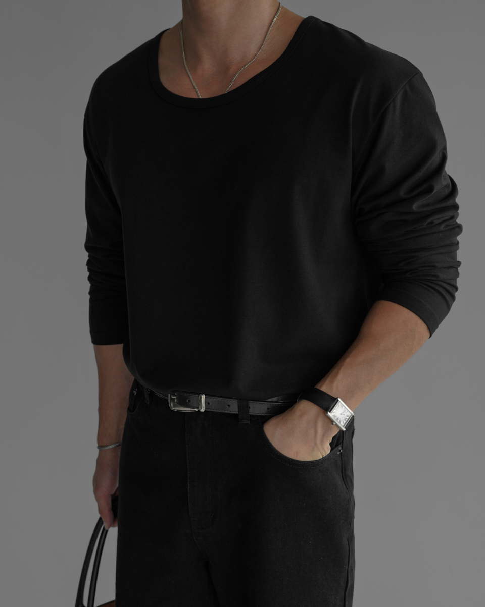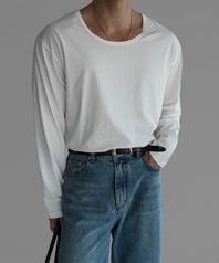 - 코튼 유넥 반팔 티셔츠의 긴팔 버전