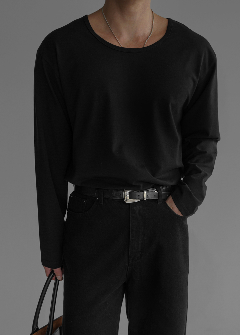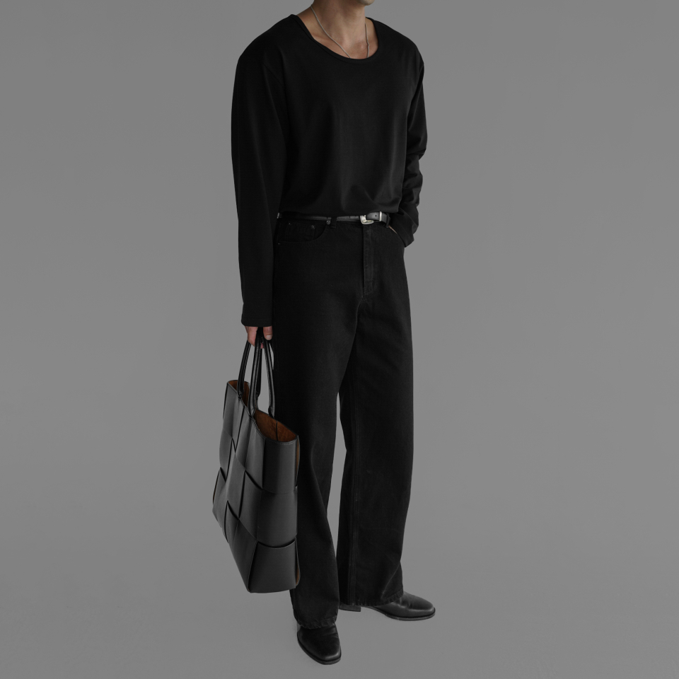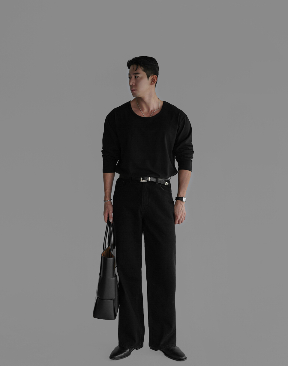 - 코튼 유넥 반팔 티셔츠의 긴팔 버전