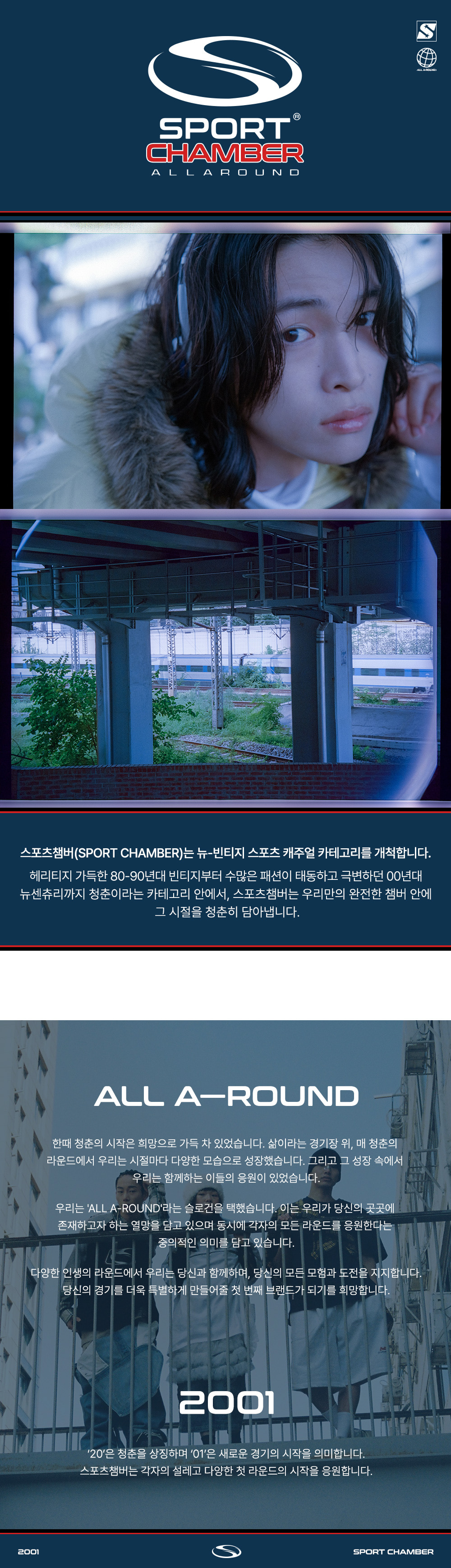 스포츠챔버(SPORT CHAMBER)는 뉴-빈티지 스포츠 캐주얼 카테고리를 개척하는 브랜드입니다. 헤리티지 가득한 80-90년대 빈티지부터 수많은 패션이 태동하고 극변하던 00년대 뉴센추리까지, 청춘이라는 카테고리 안에서 스포츠챔버는 우리만의 완전한 챔버 안에 그 시절을 청춘히 담아냅니다.
