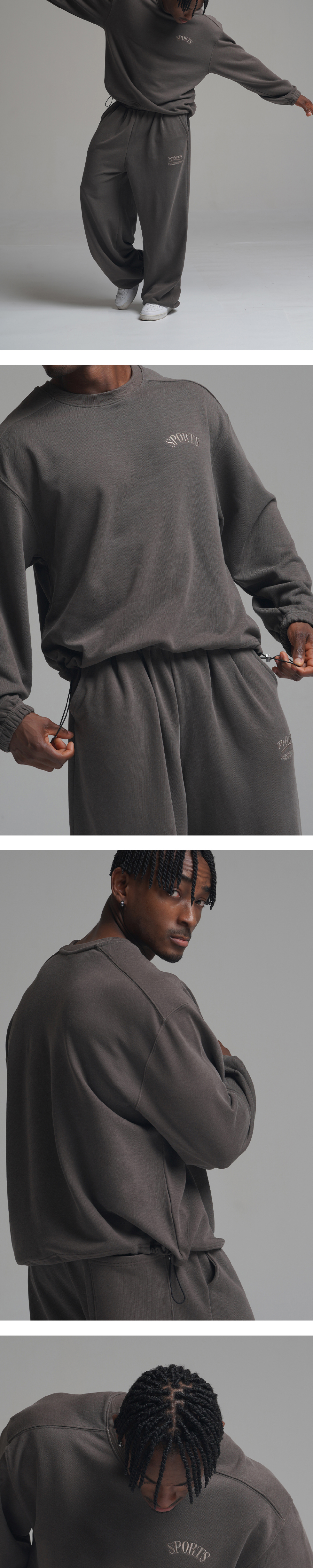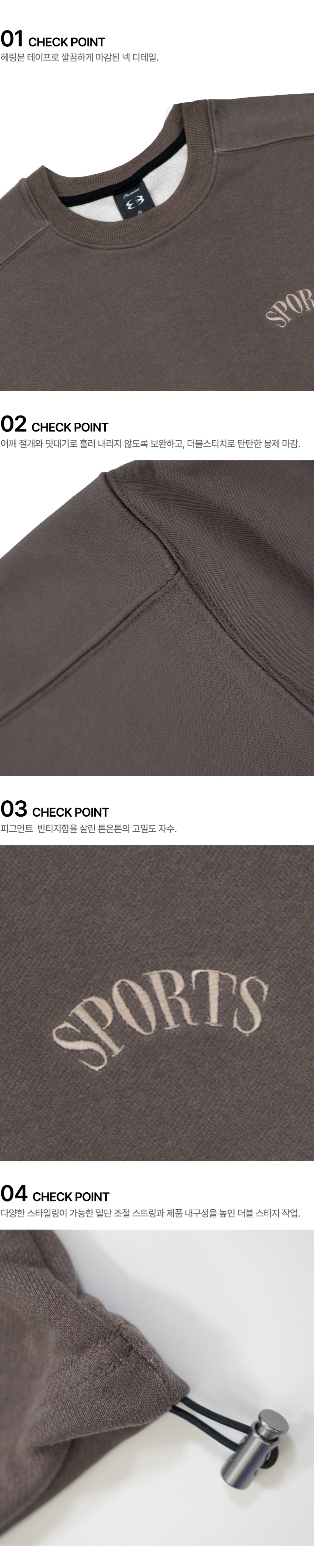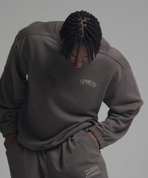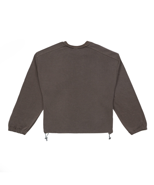 피그먼트 오버핏 절개 스트링 맨투맨 - 그레이