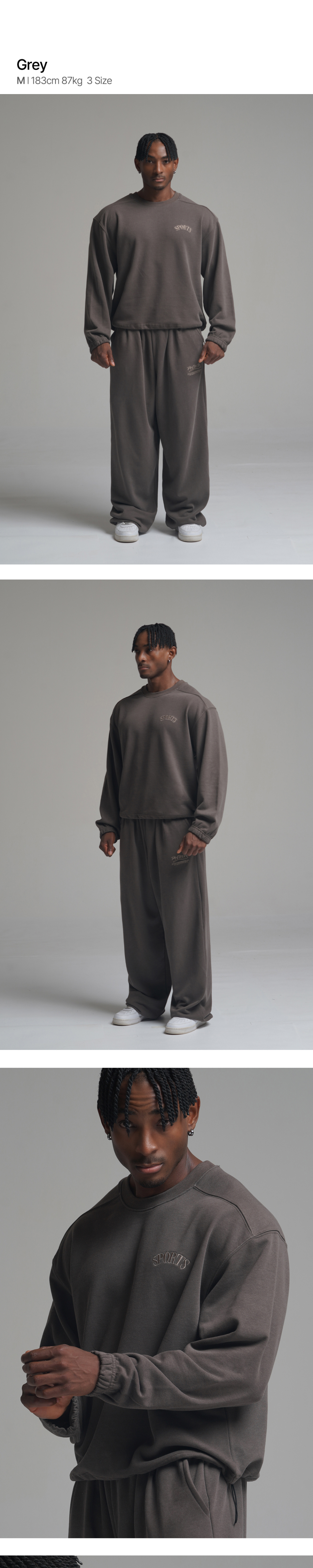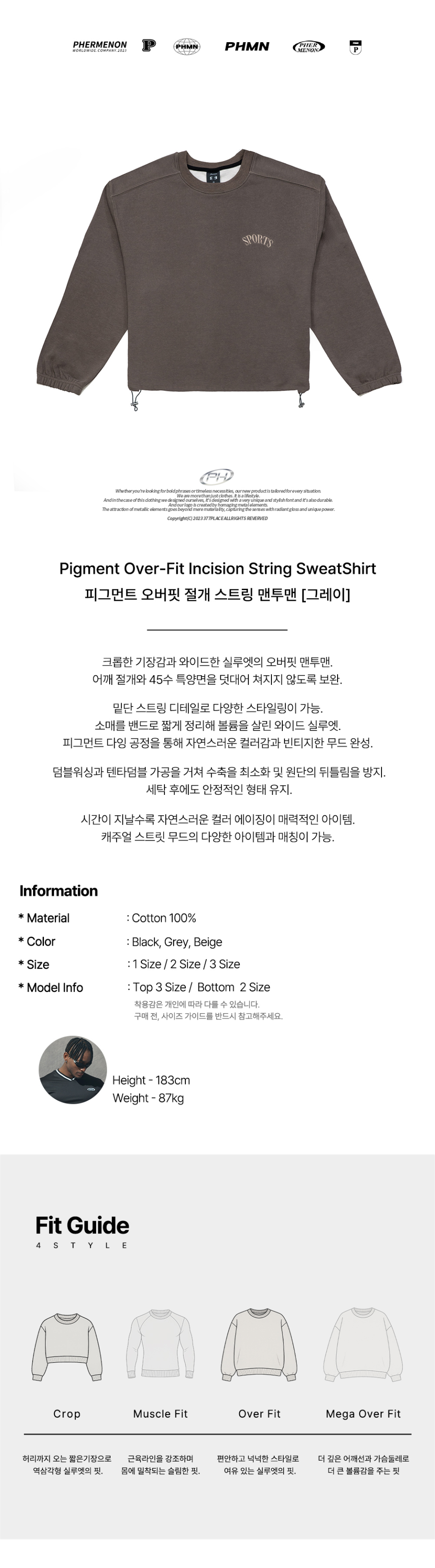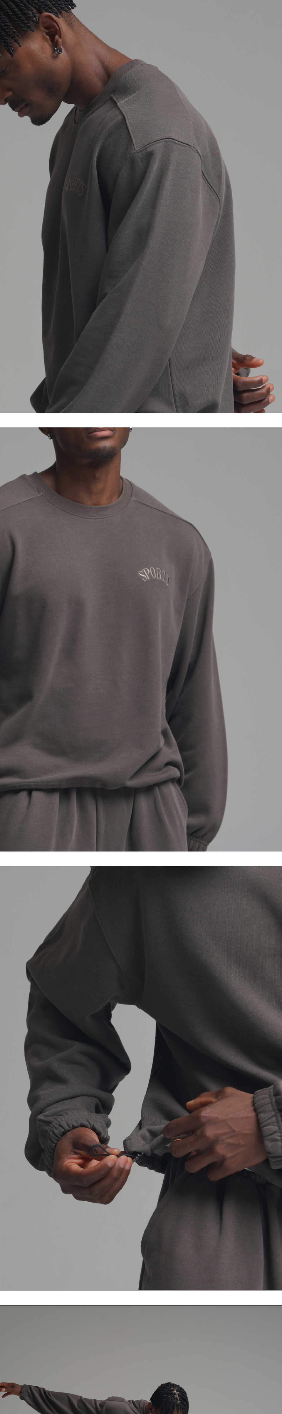 피그먼트 오버핏 절개 스트링 맨투맨 - 그레이