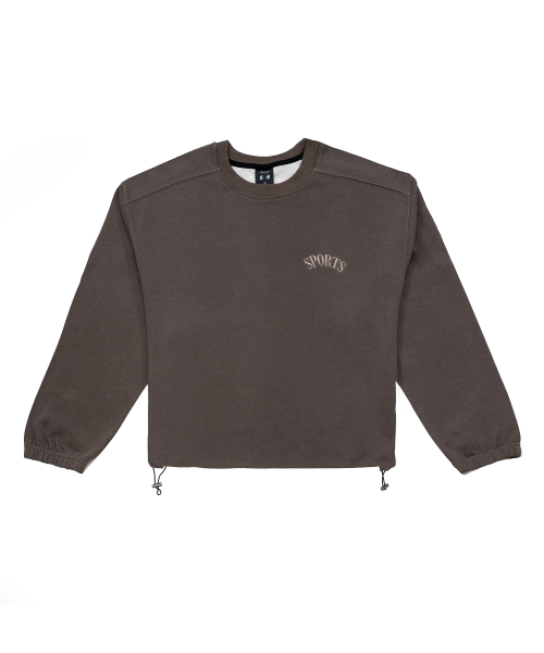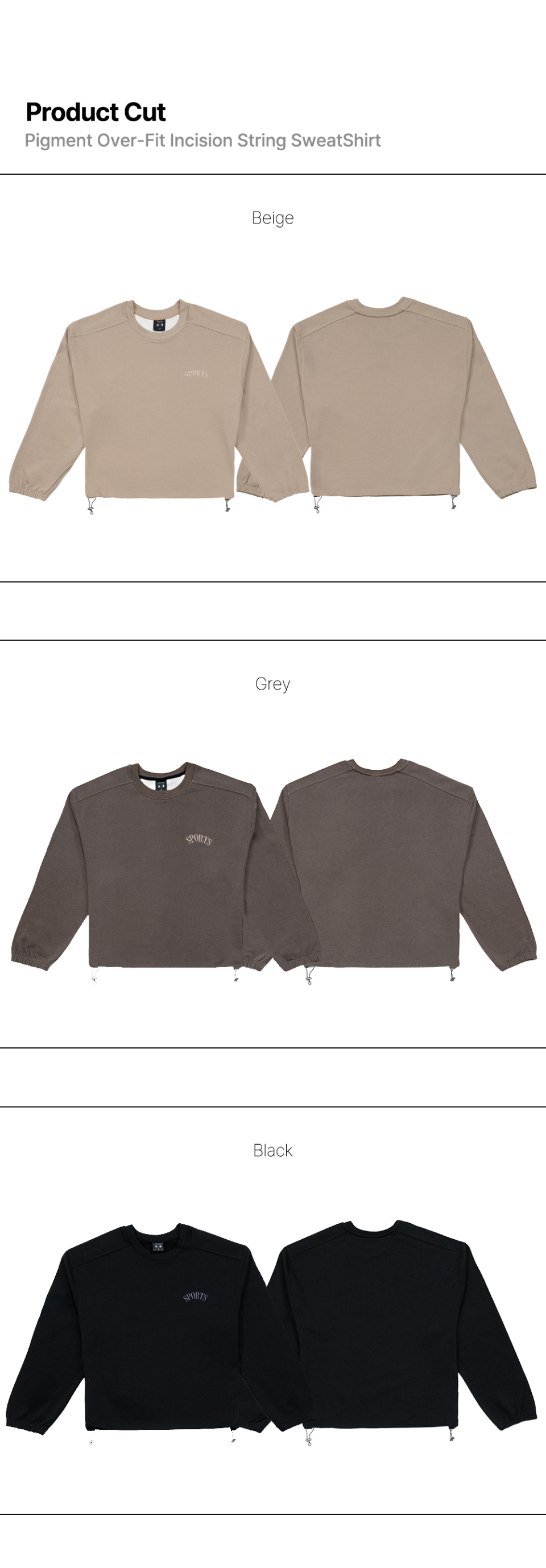 피그먼트 오버핏 절개 스트링 맨투맨 - 베이지