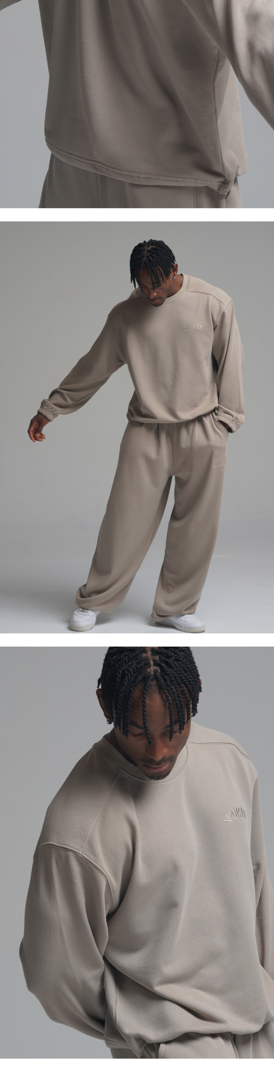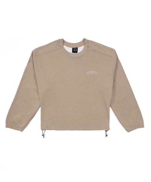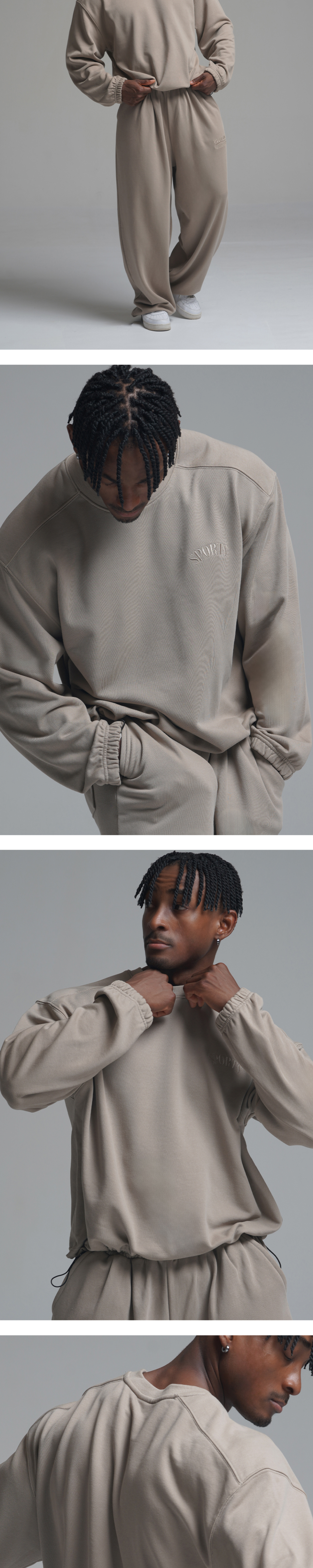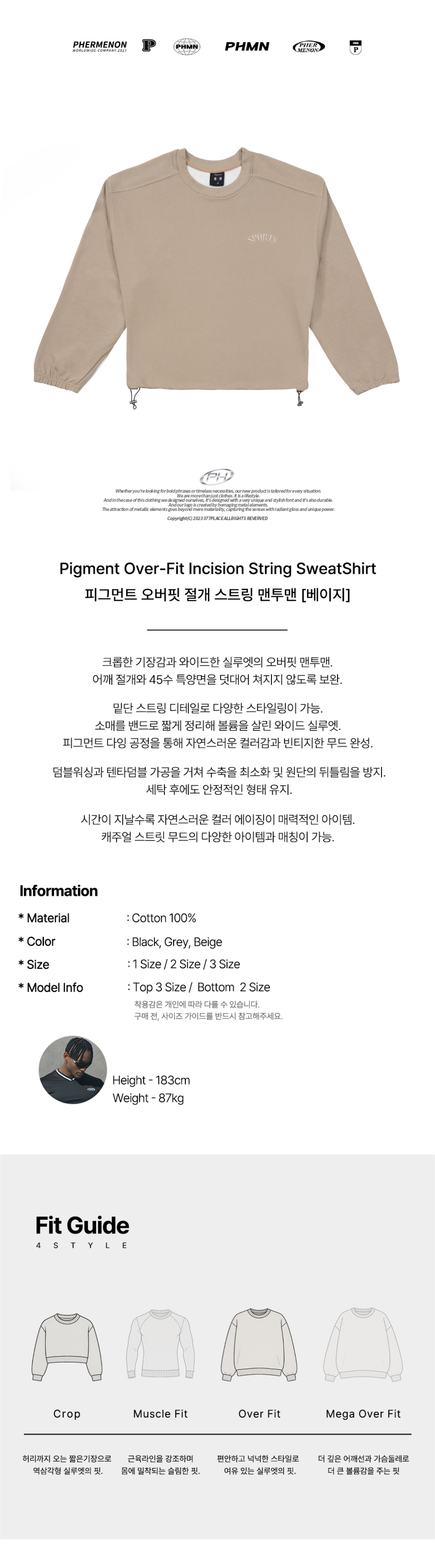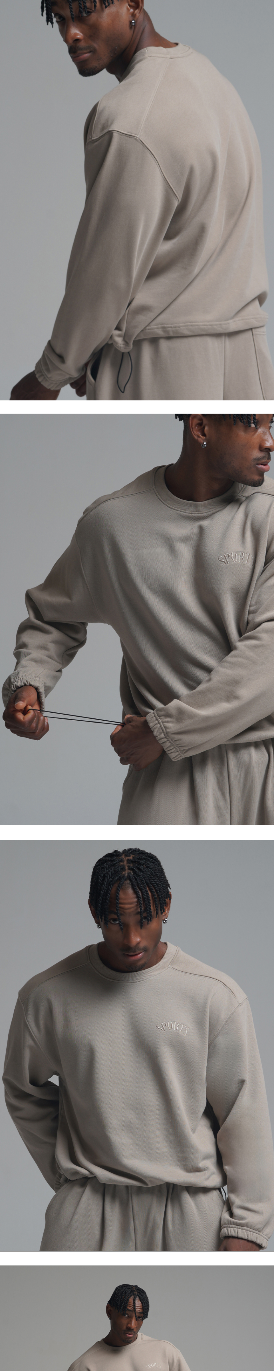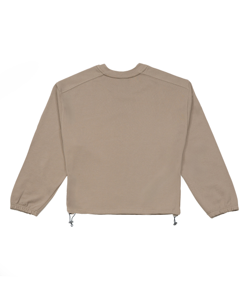 피그먼트 오버핏 절개 스트링 맨투맨 - 베이지