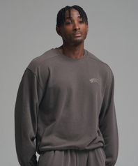 피그먼트 오버핏 절개 스트링 맨투맨 - 그레이