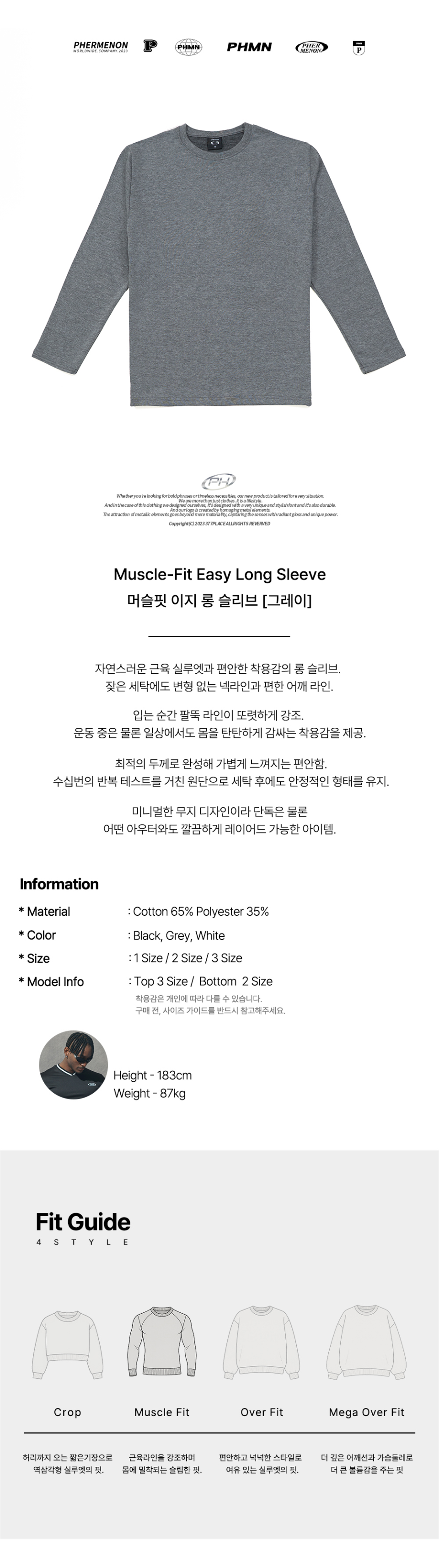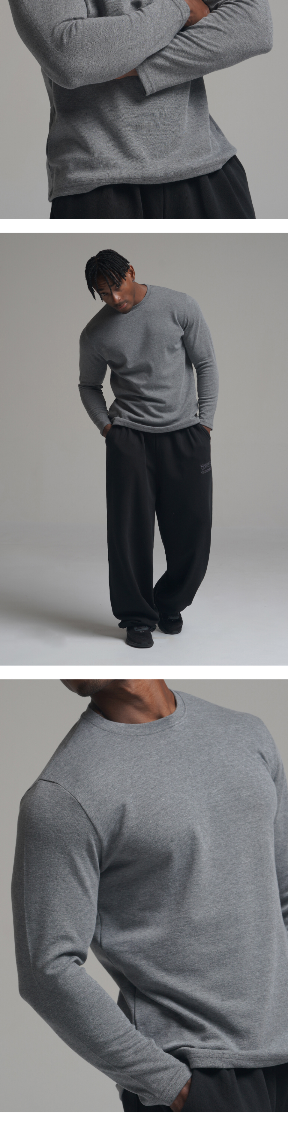 머슬핏 이지 롱 슬리브 - 그레이