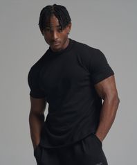 머슬핏 모크넥 반팔 티셔츠 - 블랙