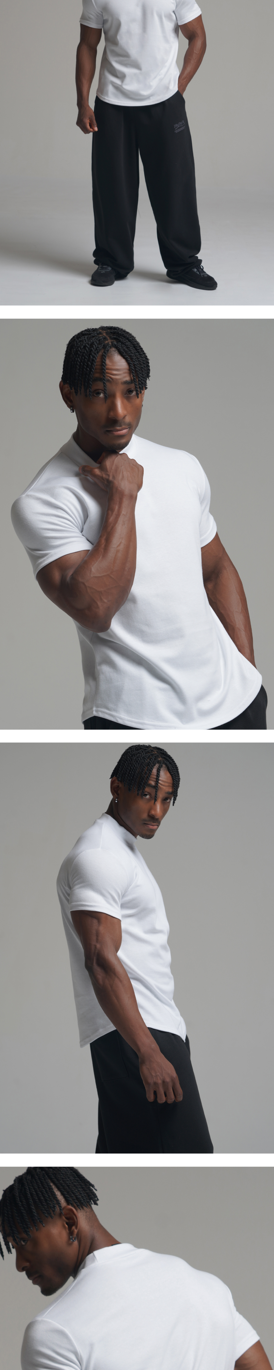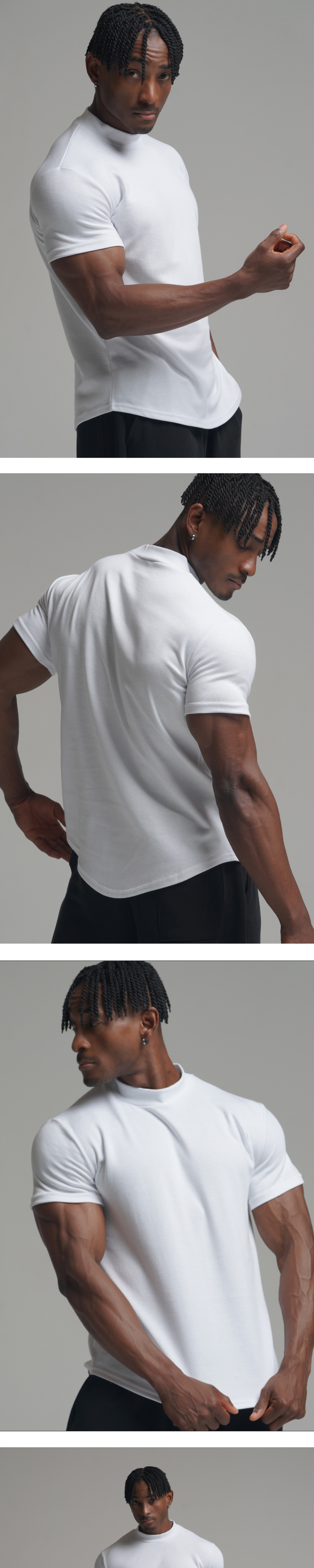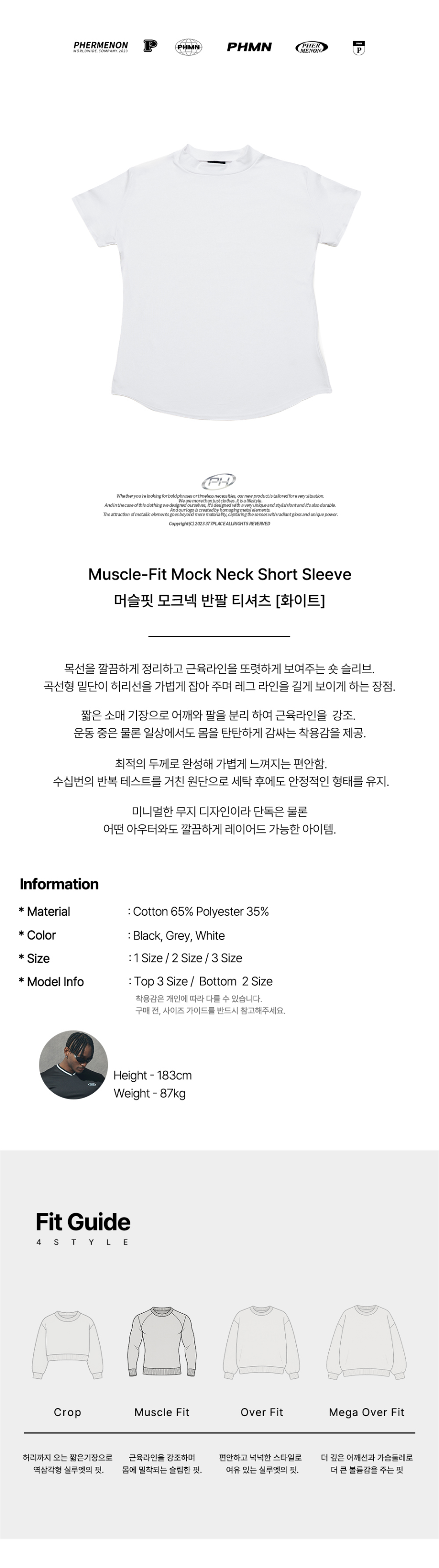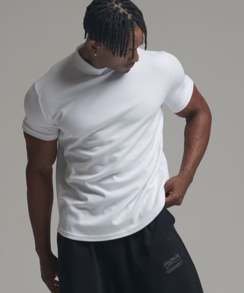 머슬핏 모크넥 반팔 티셔츠 - 화이트