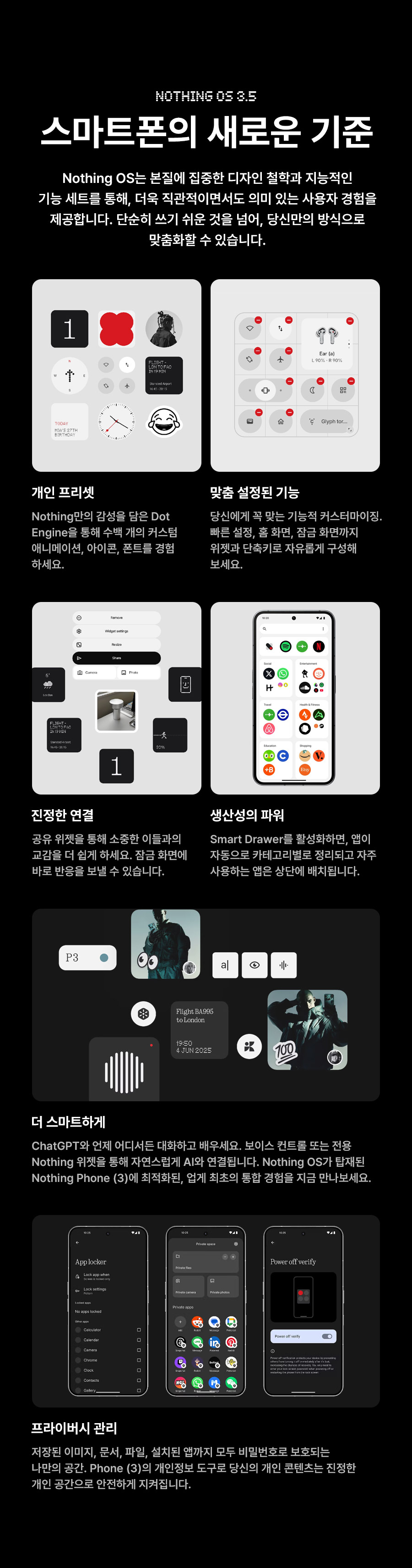 낫싱(NOTHING)은 영국 런던에 본사를 두고 있는 글로벌 테크 브랜드입니다. 단순한 테크놀로지의 발전에만 치중한 스마트 디바이스 제조를 넘어서 사람과 테크놀로지 사이의 장벽을 무너뜨릴 수 있는 사물인터넷(IoT) 생태계의 완성을 이뤄 소비자에게 훨씬 와닿는 제품을 창조하는 것을 목표로 합니다.