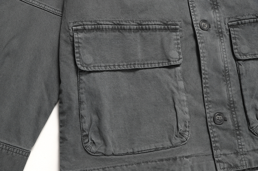 전면의 4개의 플랩 포켓으로 수납성을 더해주었고, 소맷단의 2버튼으로 소맷단 조절이 용이합니다.