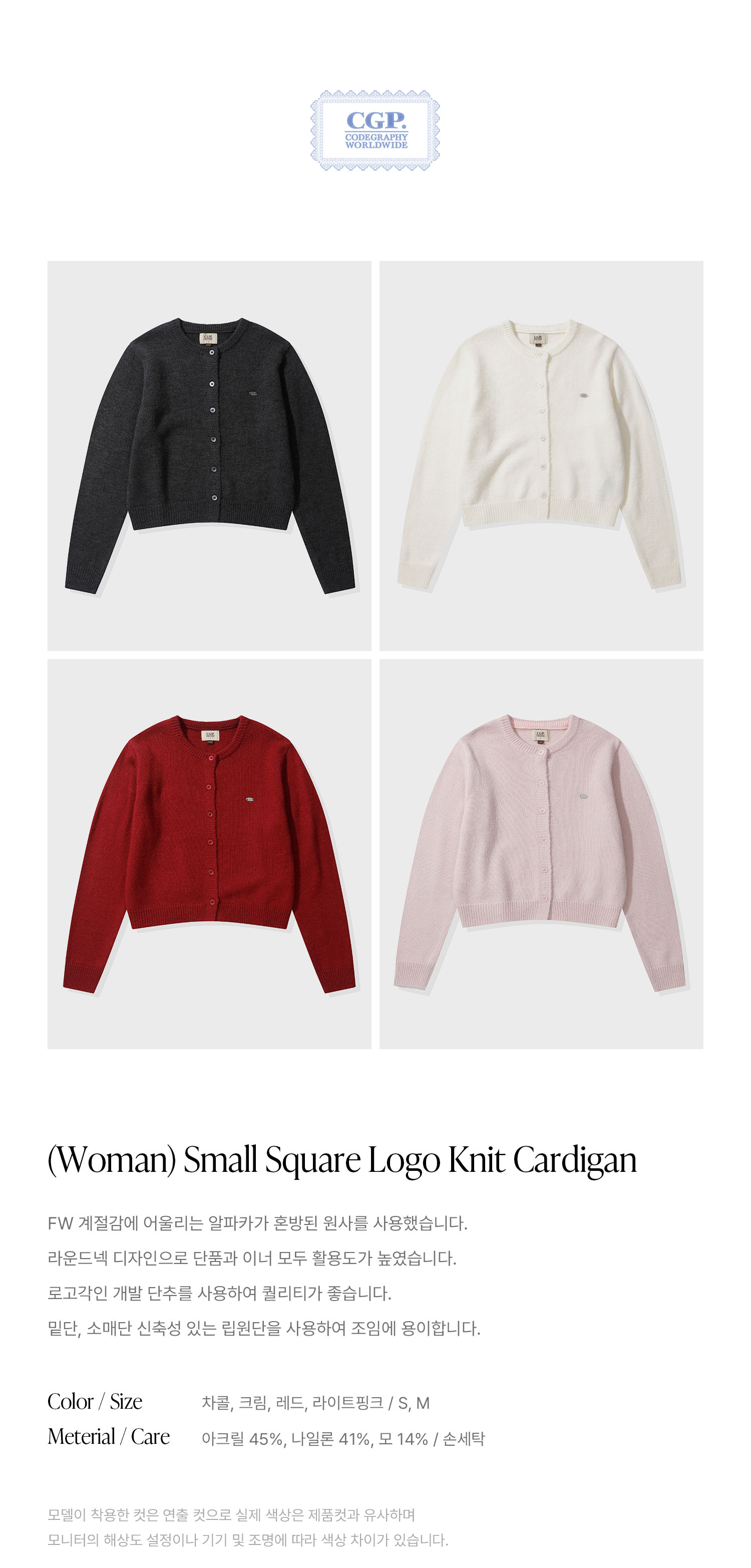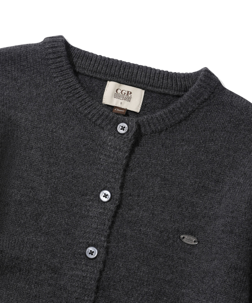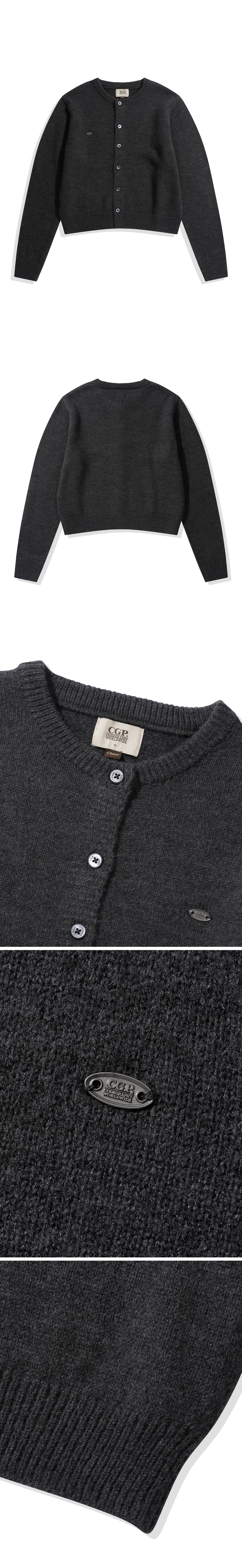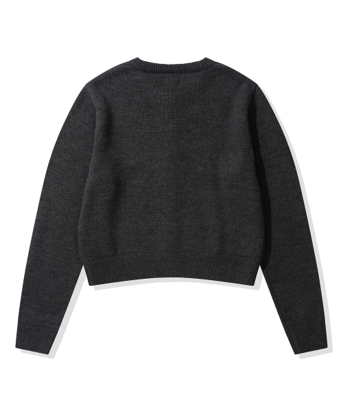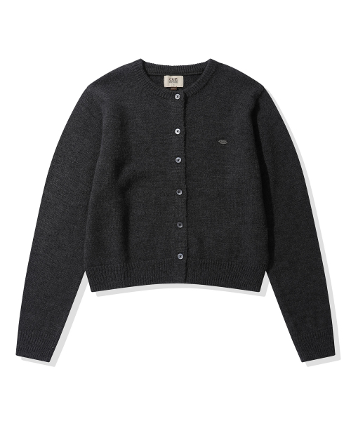 (우먼) 스몰 스퀘어 로고 니트 가디건_차콜