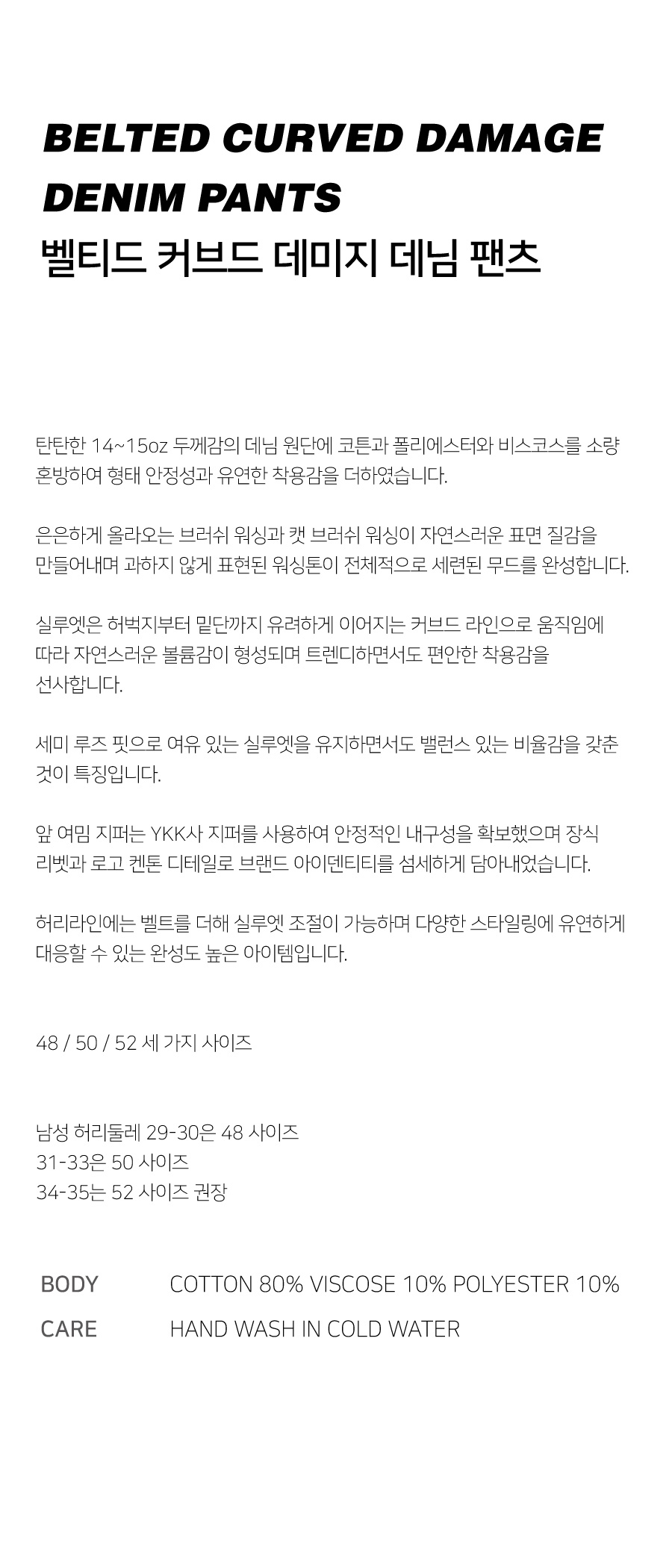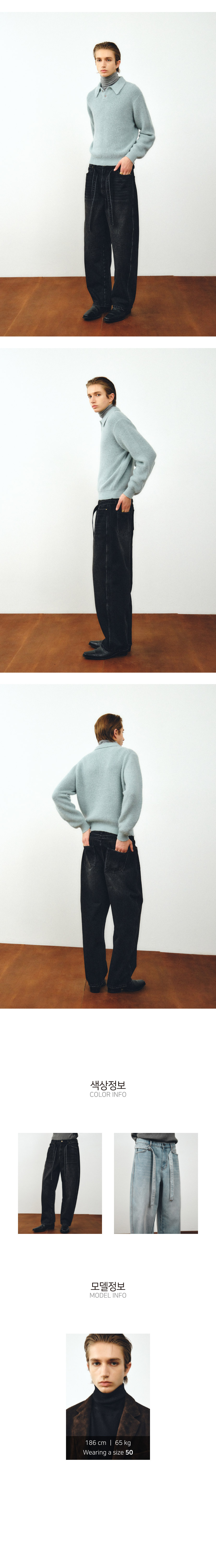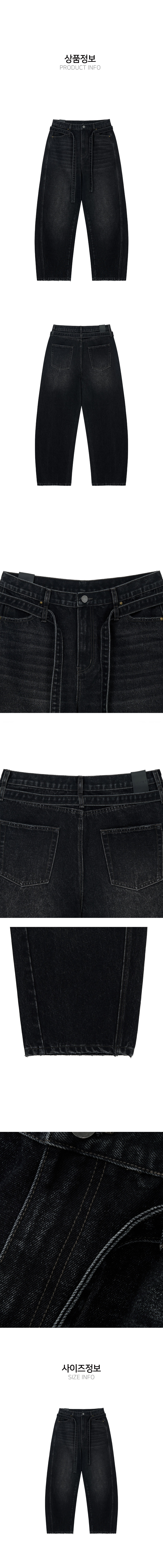 벨티드 커브드 데미지 데님 팬츠 (블랙)
