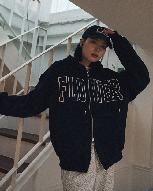 FLOWER APLIQUE RAGLAN SWEATSHIRT(BLACK)
