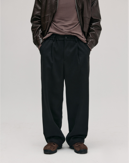 소프트 벨티드 핀스트라이프 팬츠 _ 블랙