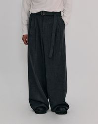 소프트 벨티드 핀스트라이프 팬츠 _ 그레이
