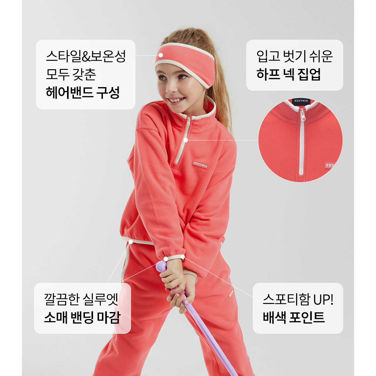 젝시믹스 키즈(XEXYMIX KIDS)는 아이의 활동성을 고려한 설계로, 놀이부터 일상까지 편안함과 기능성을 더해 모든 순간을 함께하는 키즈 액티브웨어 브랜드입니다.