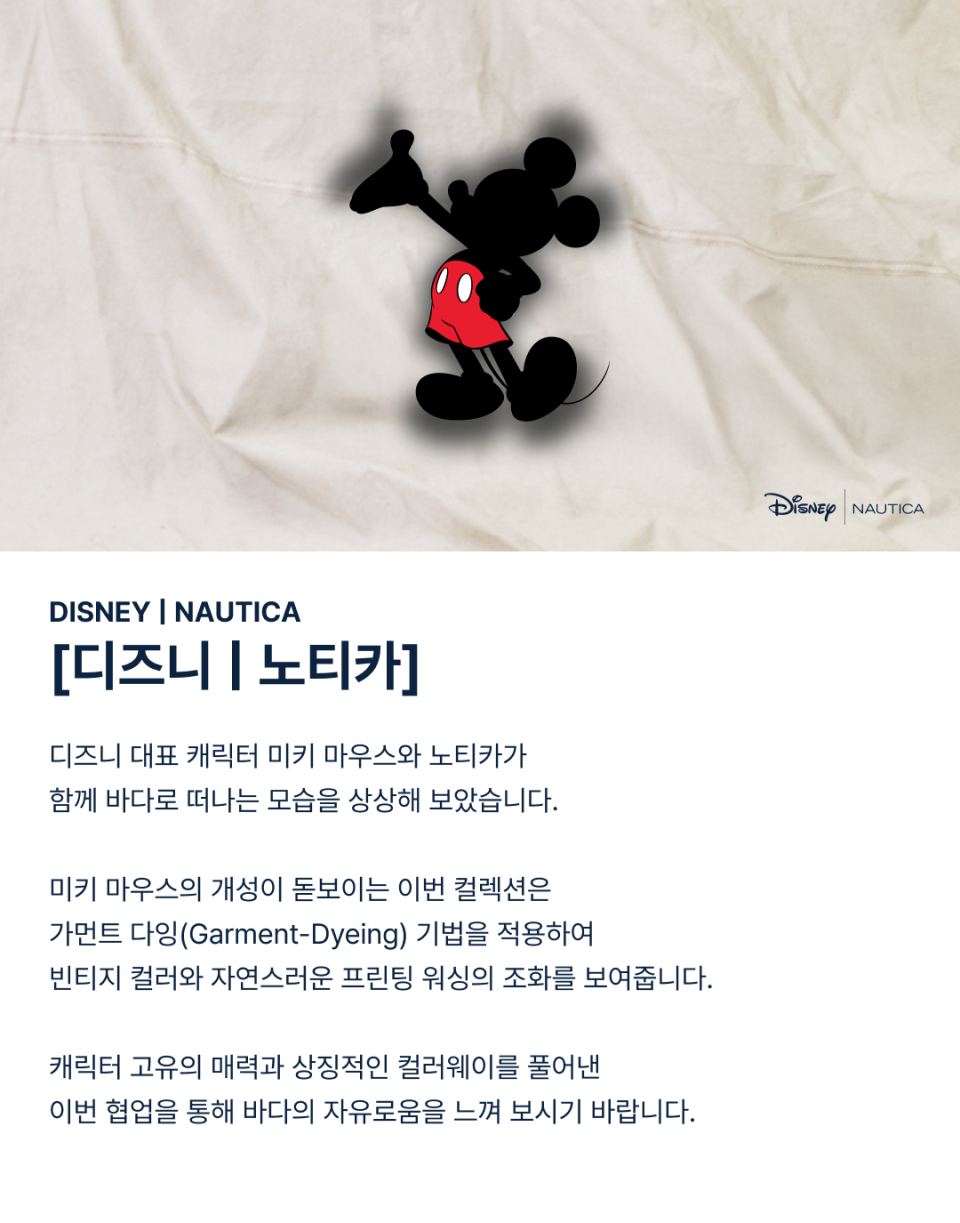 노티카(NAUTICA)는 1983년 바다로부터 영감을 받아 뉴욕에서 탄생했습니다. 안전과 실용성을 강조했던 항해복과 1980년대 미국 팀 스피릿 문화를 바탕으로 브랜드만의 감성을 담아 항해와 일상을 아우르는 아메리칸 캐주얼 웨어를 제안합니다.