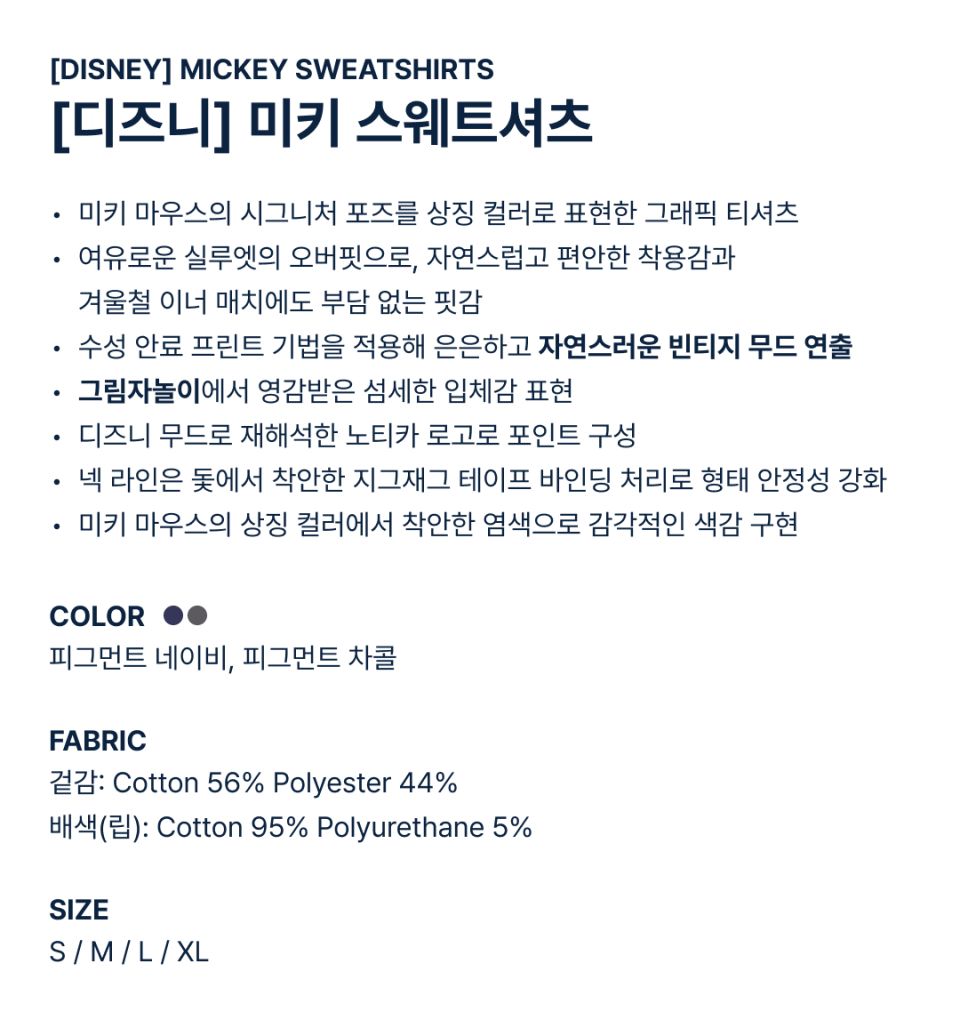 [디즈니] 미키 스웨트셔츠 NSW4705