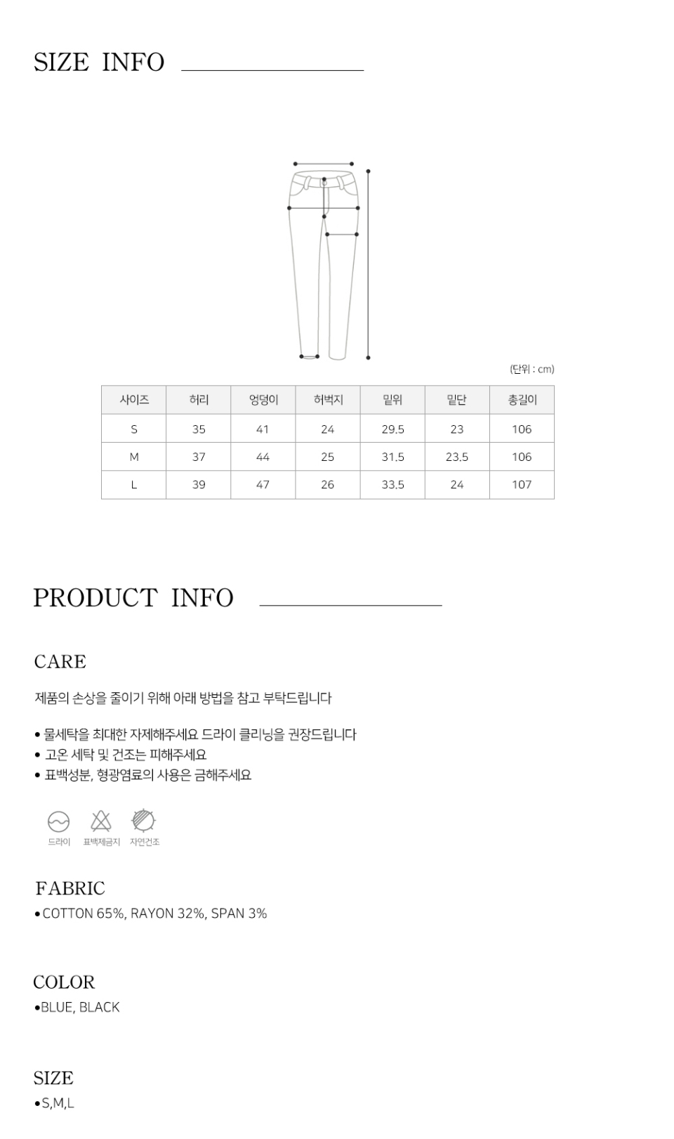 | 핏 | 스키니 | 슬림 | 레귤러 | 루즈 | 오버 사이즈 |