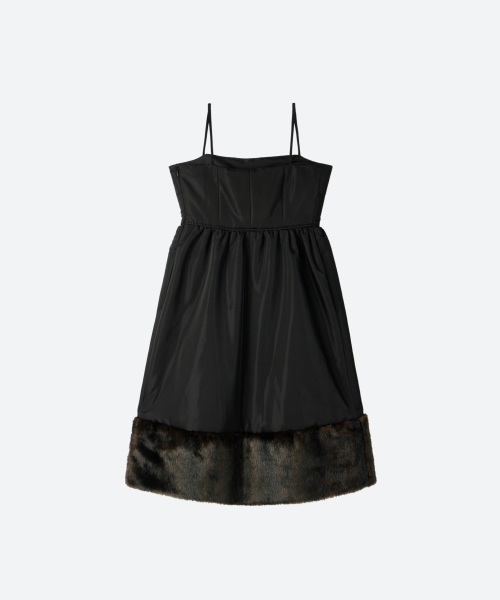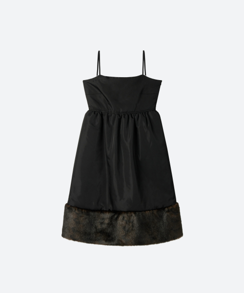 Fur Trim Baby-doll Padding Dress / Black
