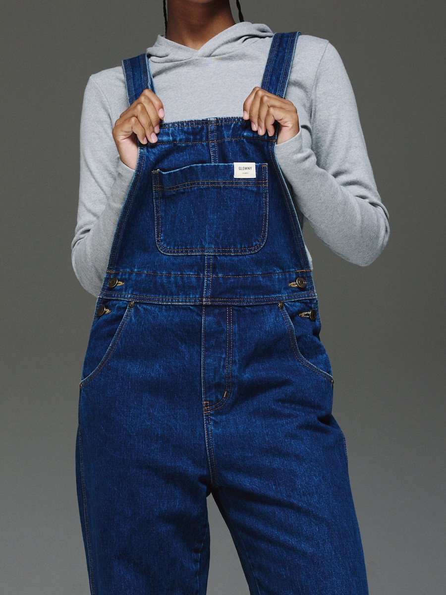 릴렉스 루즈 핏. 길이 조절 서스펜더. 허리 조절 스트링. GLOWNY 클래식 라벨. 5개 포켓.