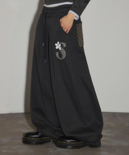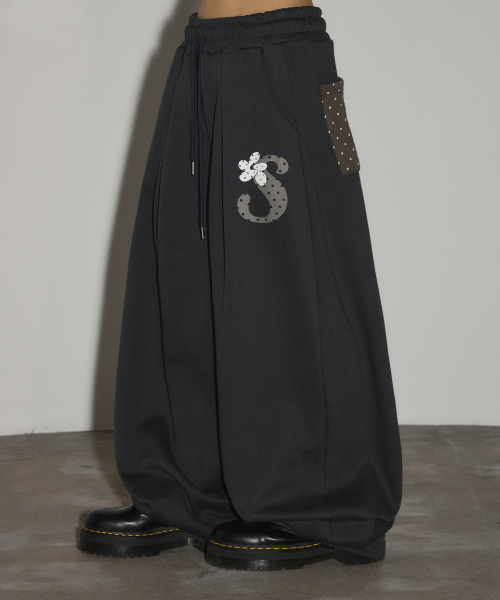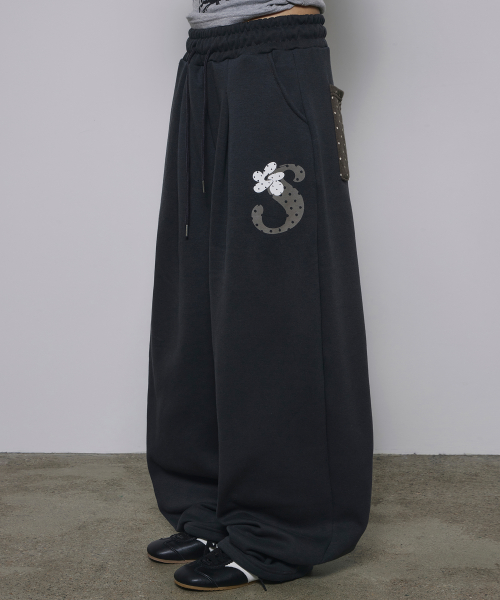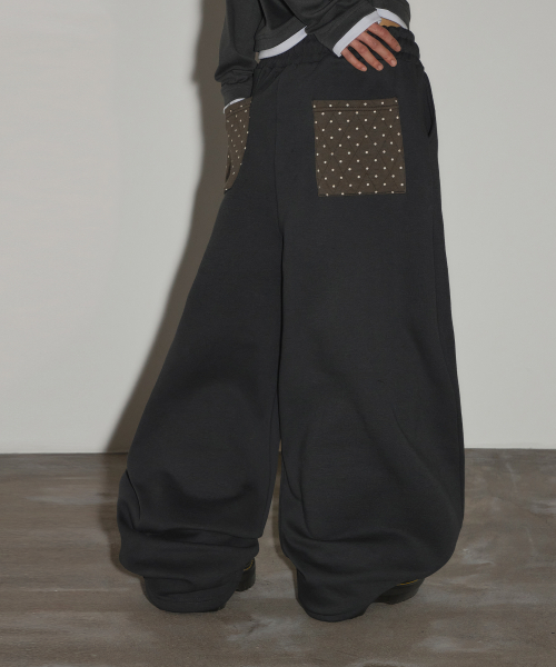 도트 포켓 로고 스웨트 팬츠[차콜]