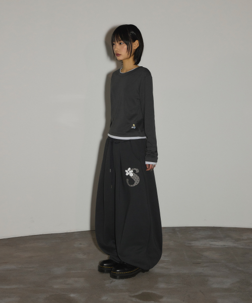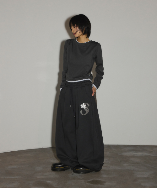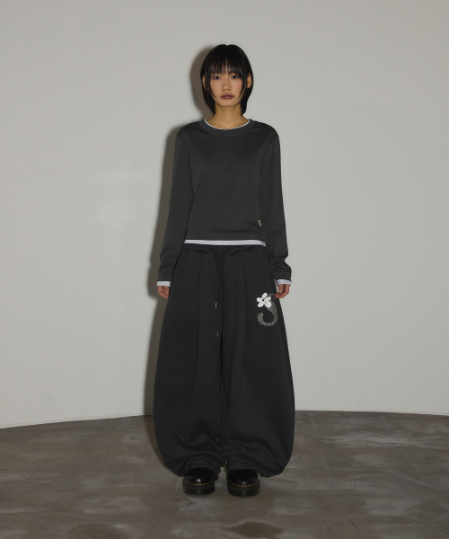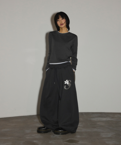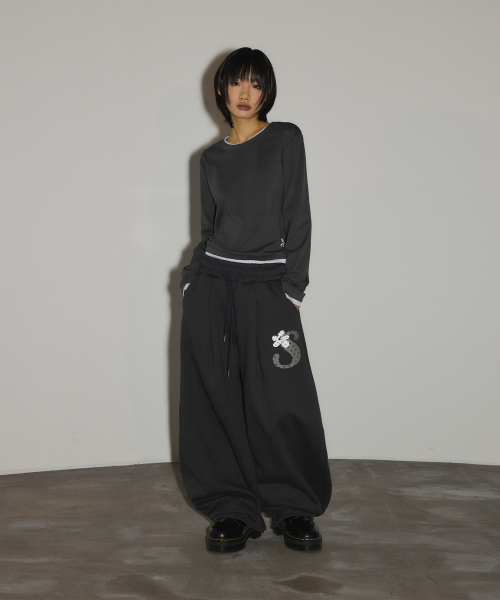 엔젤 아플리케 커브드 스웨트 팬츠[그레이]