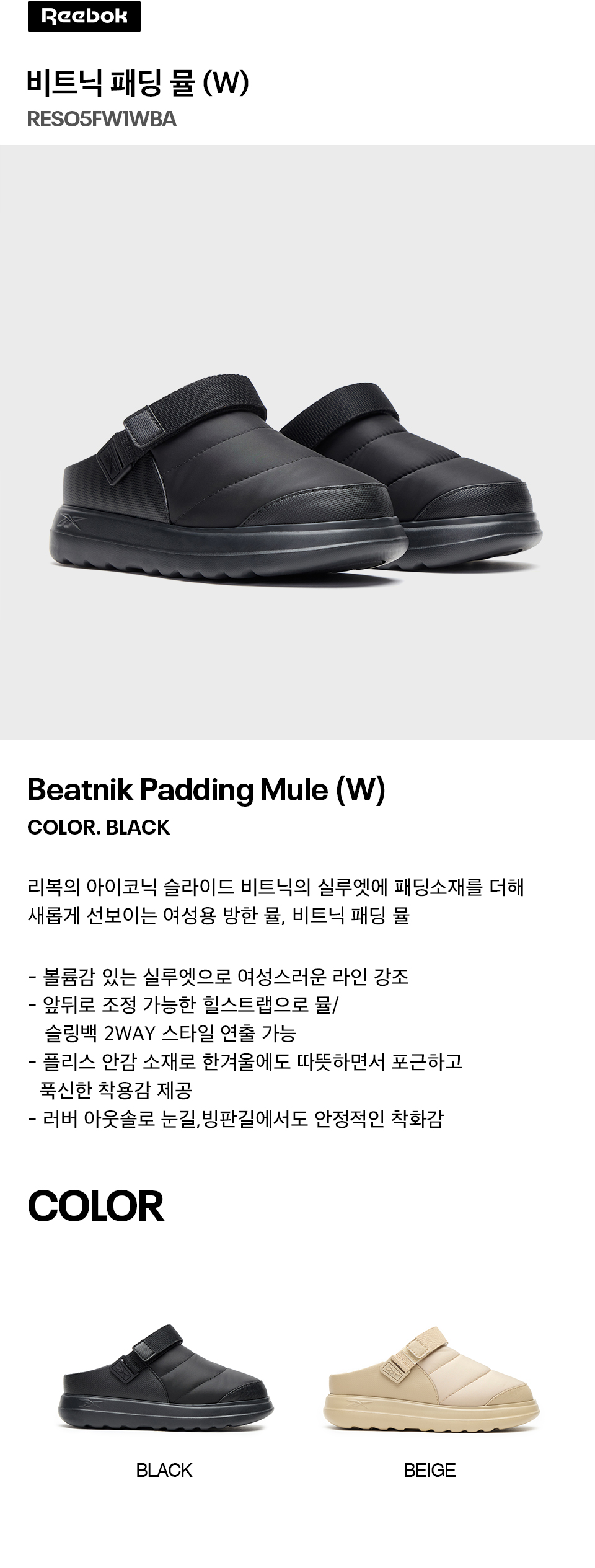 비트닉 패딩 뮬 (W) - 블랙