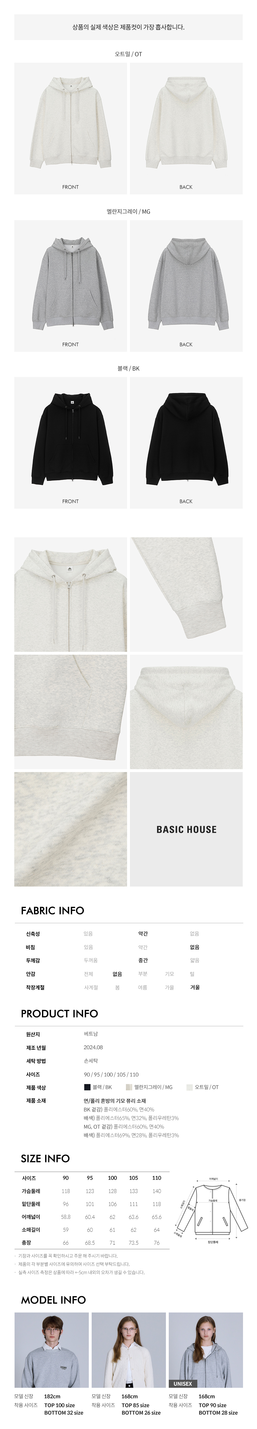 UNI 베이직 기모쭈리 후드집업(3컬러) LAJP7101